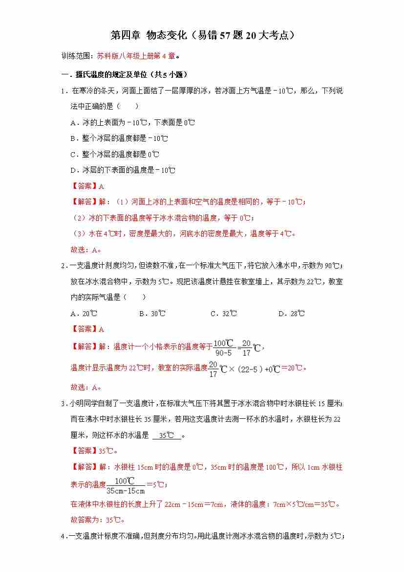 第四章 物态变化【单元测试·专项卷】(解析版)