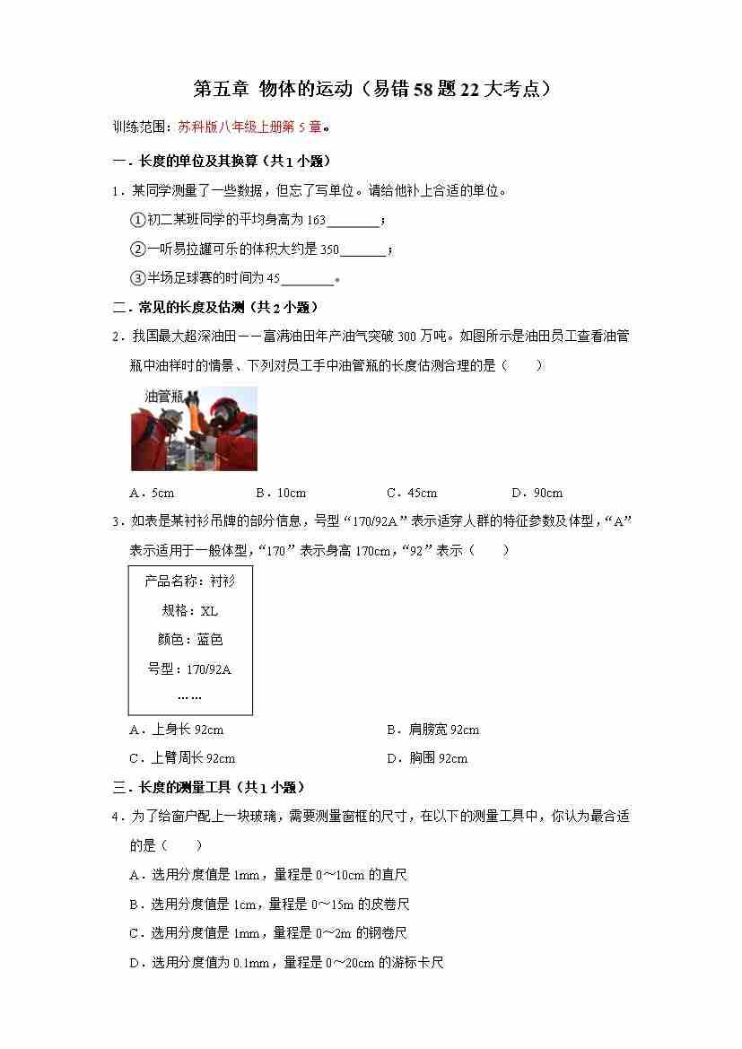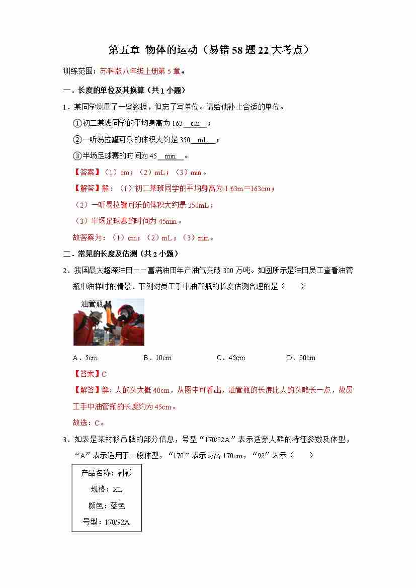 第5章 物体的运动(易错58题22大考点)(解析版)