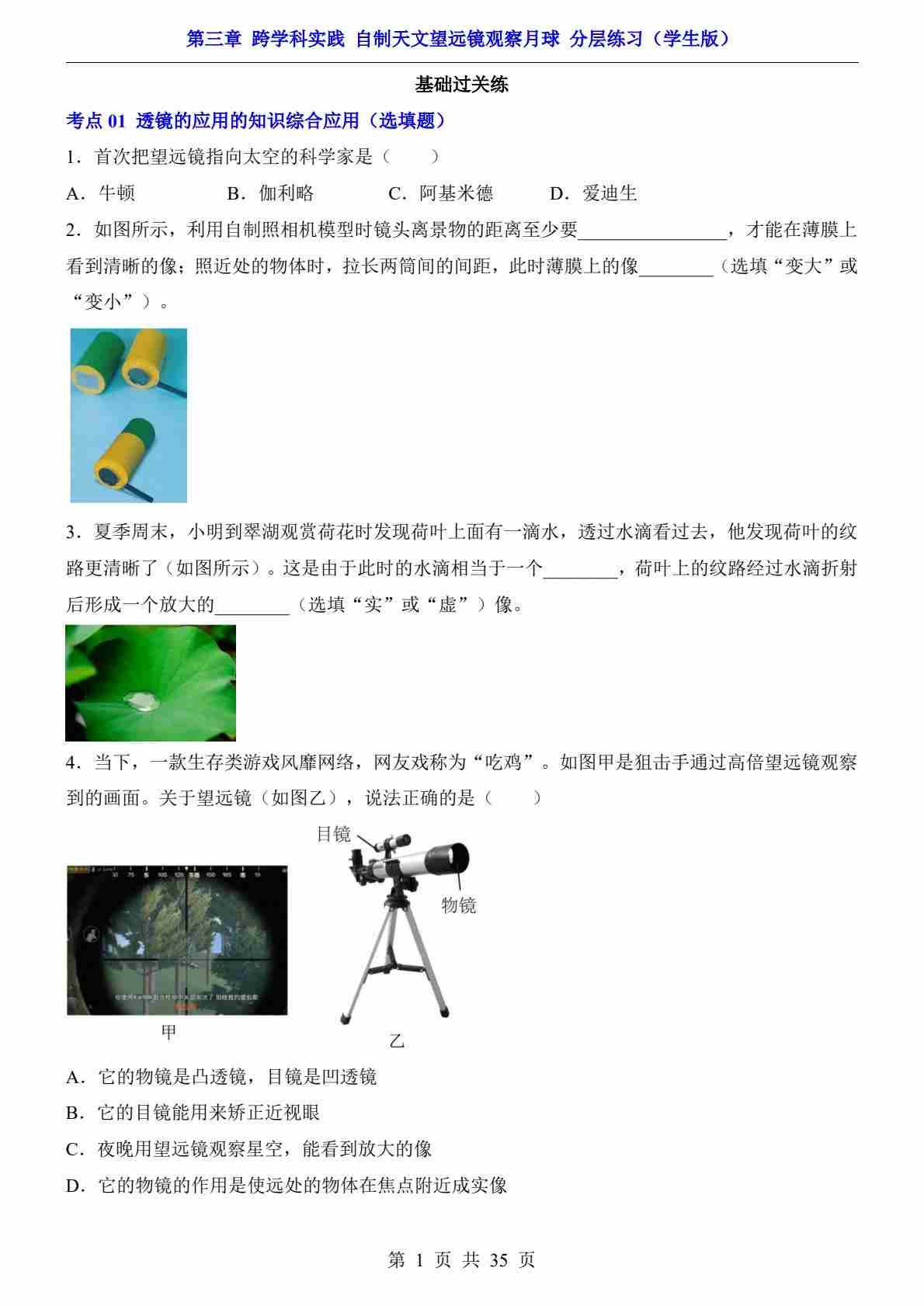 3.6 跨学科实践 自制天文望远镜观察月球(分层练习)