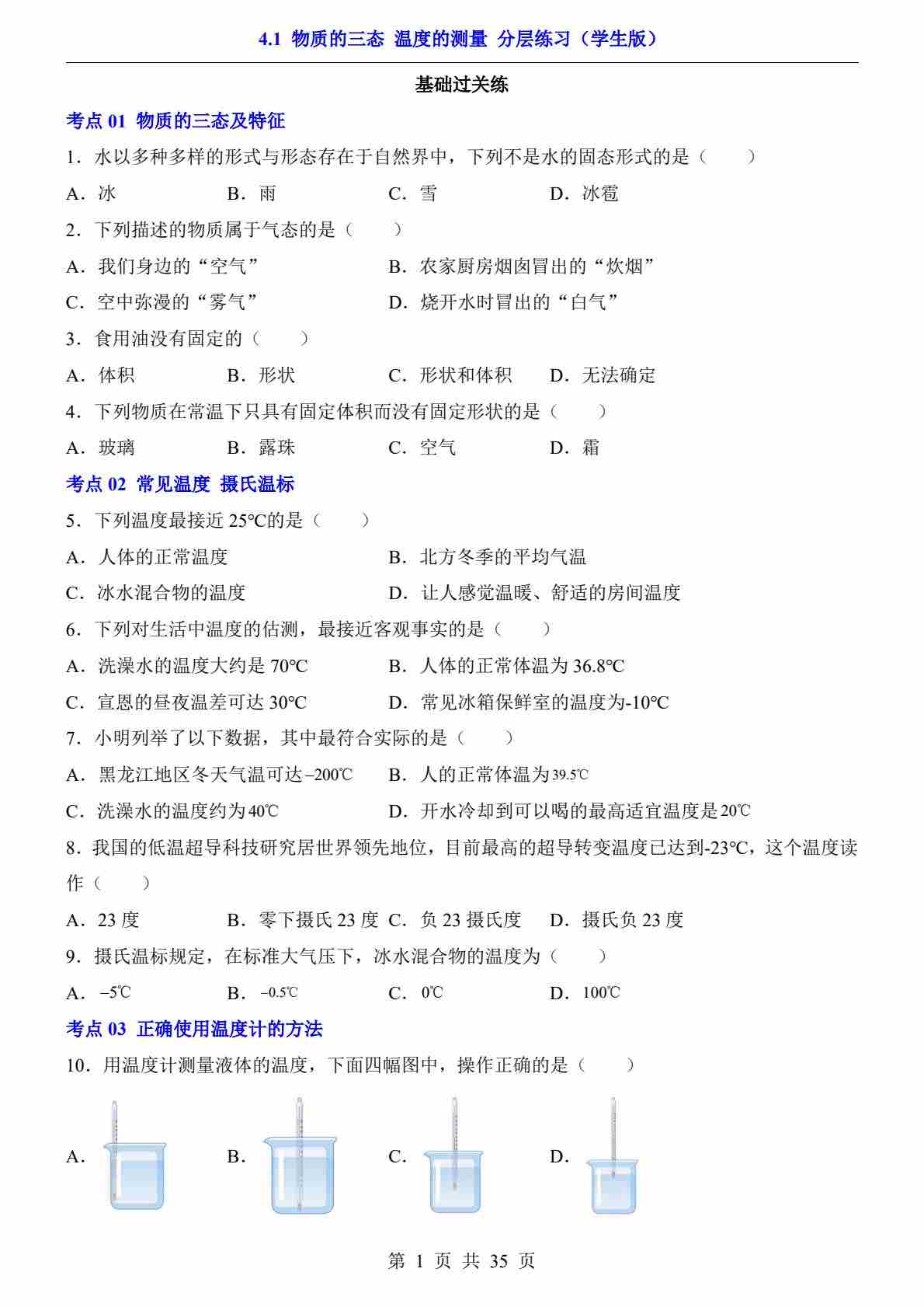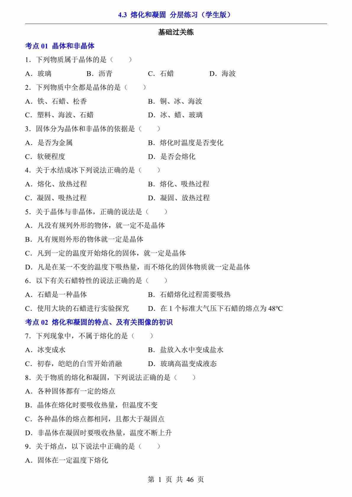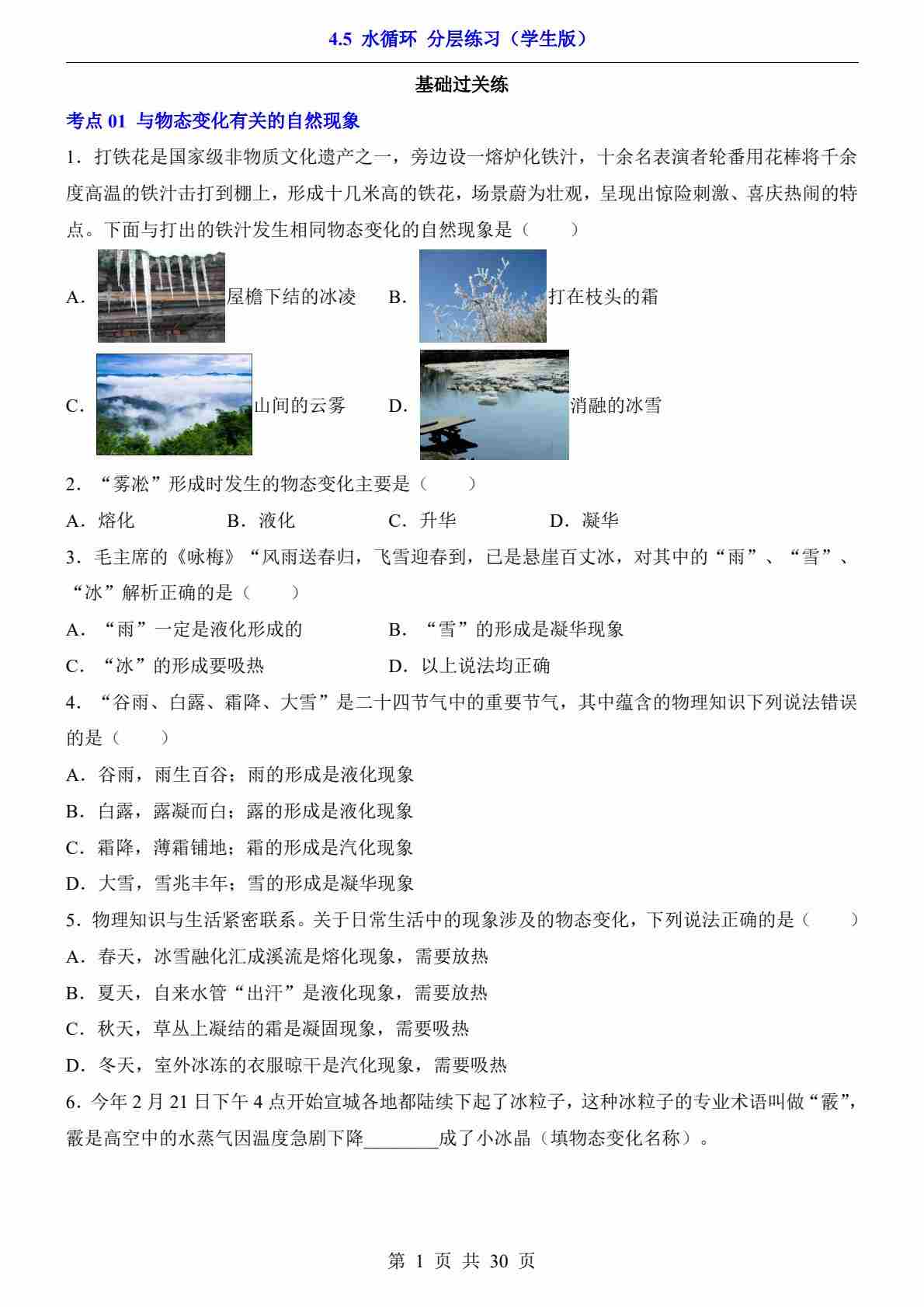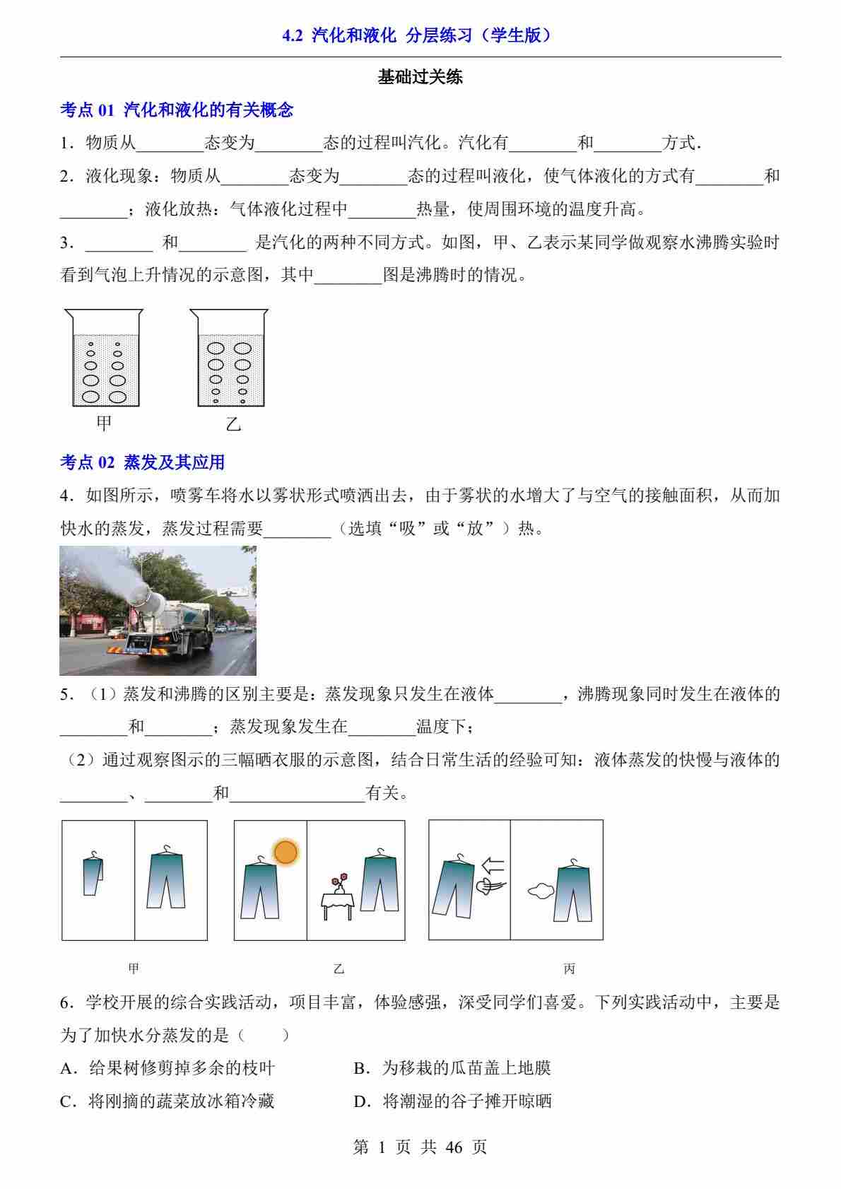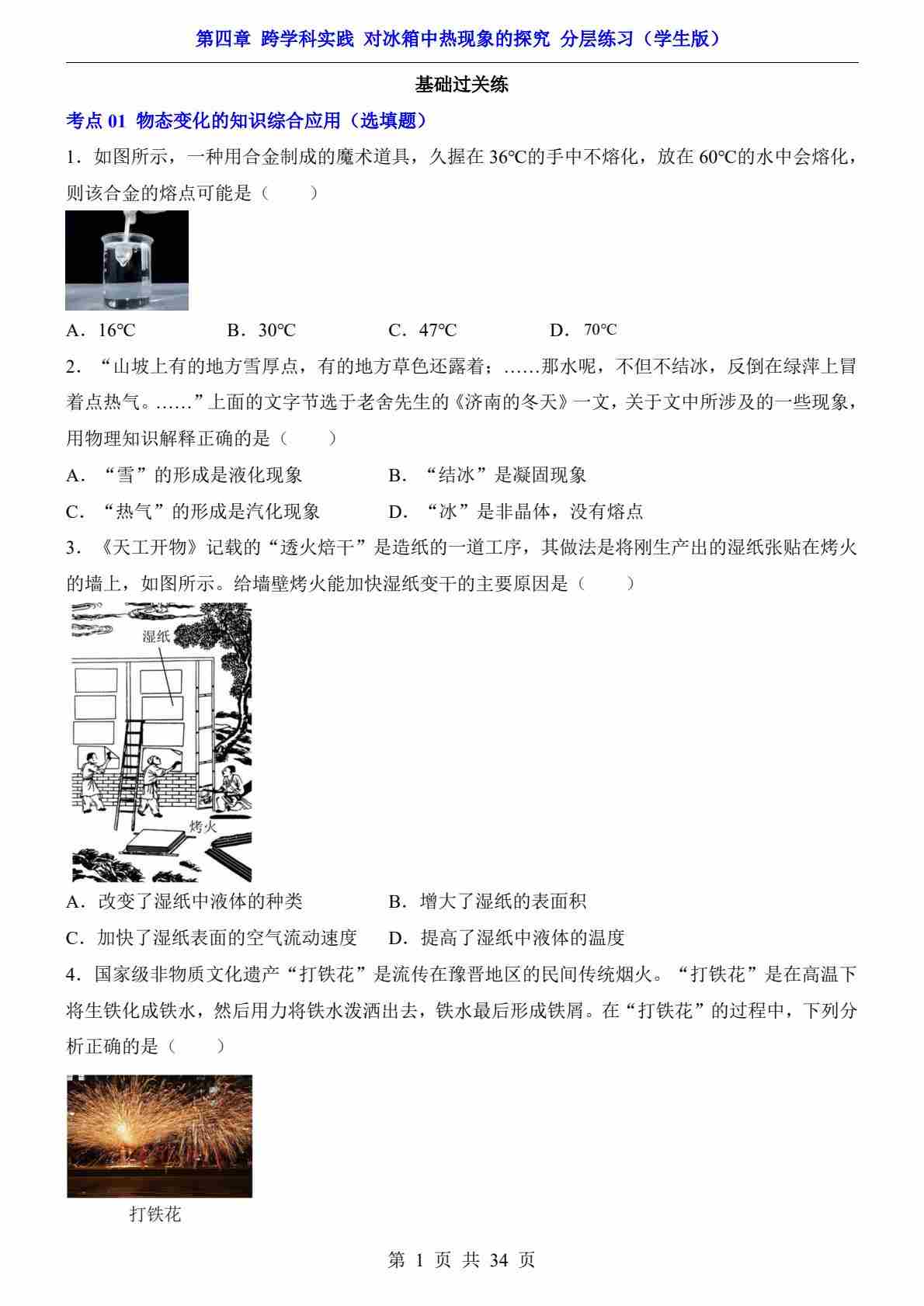 4.6 跨学科实践 对冰箱中热现象的探究(分层练习)