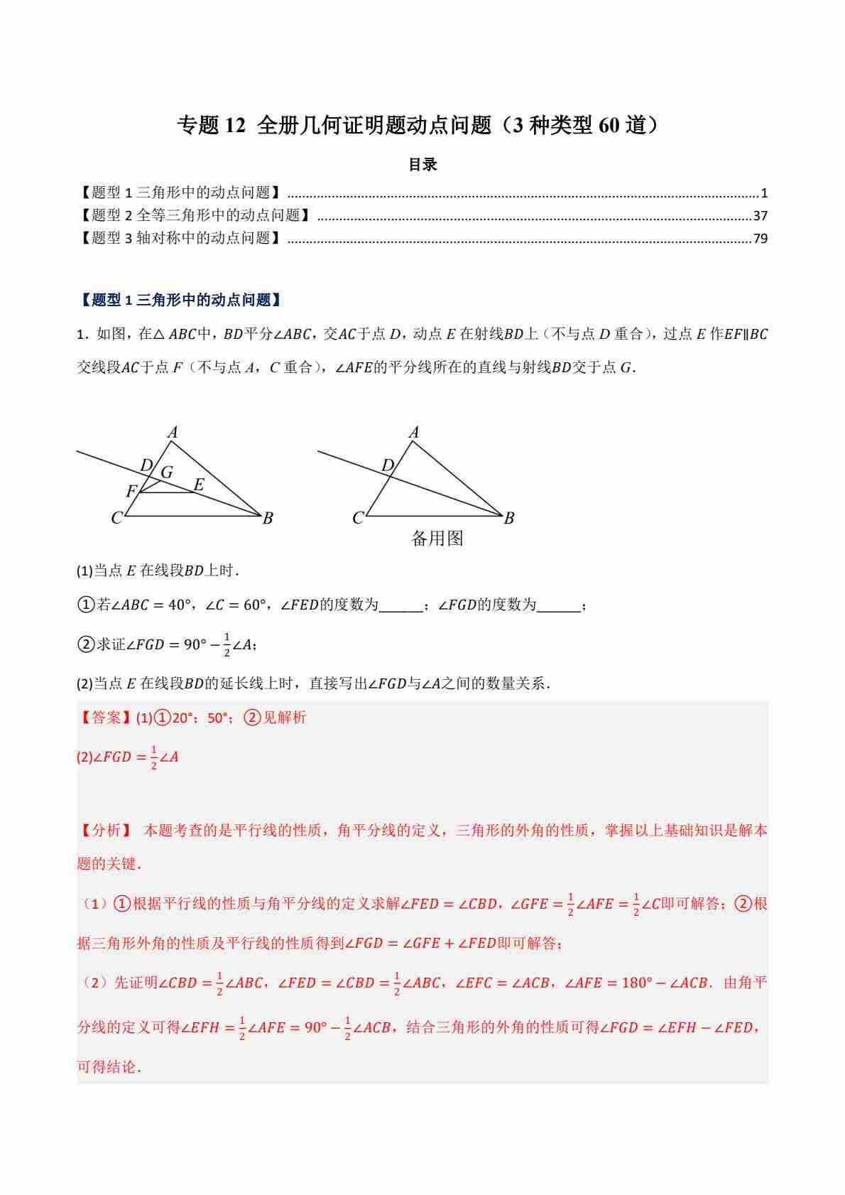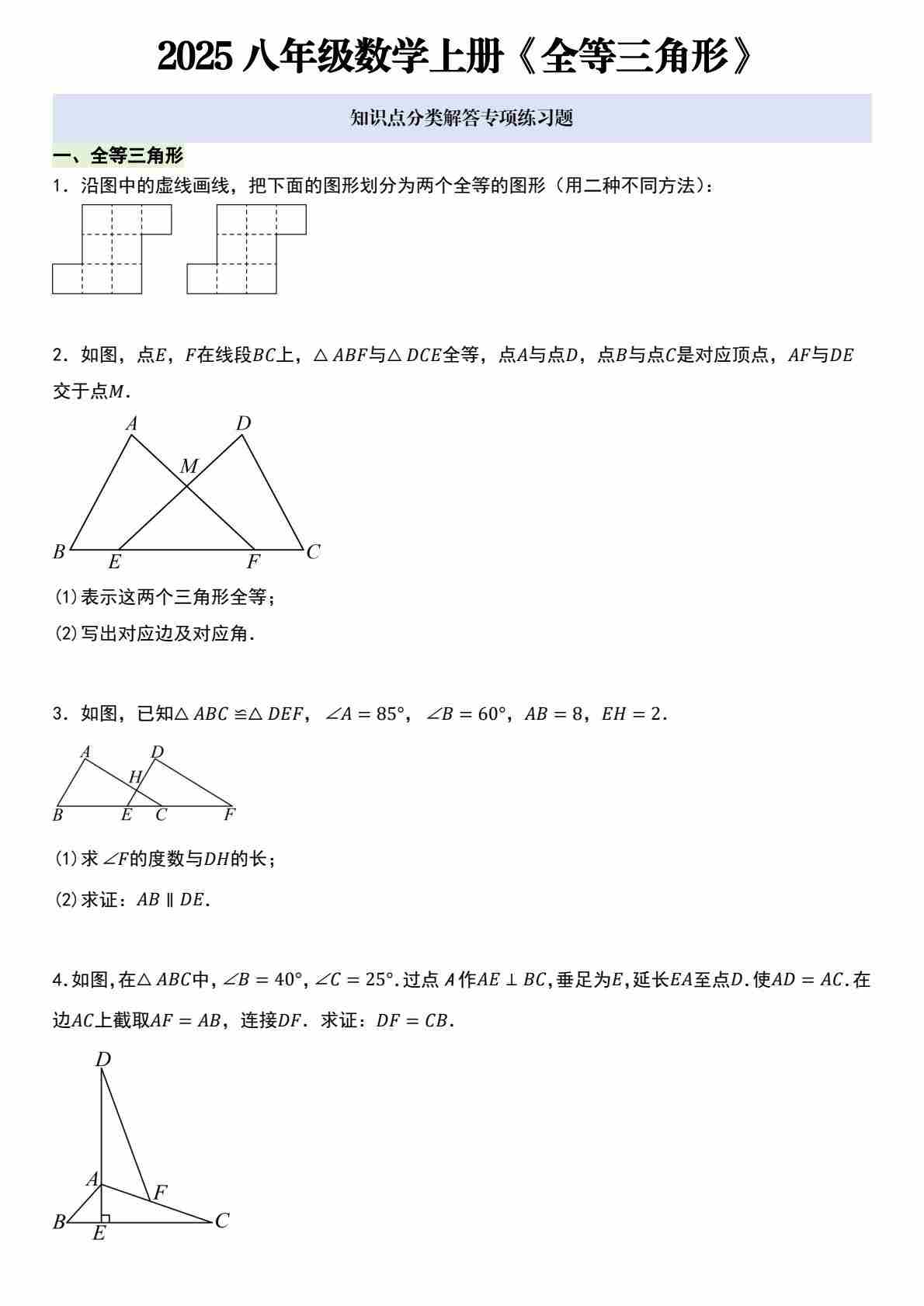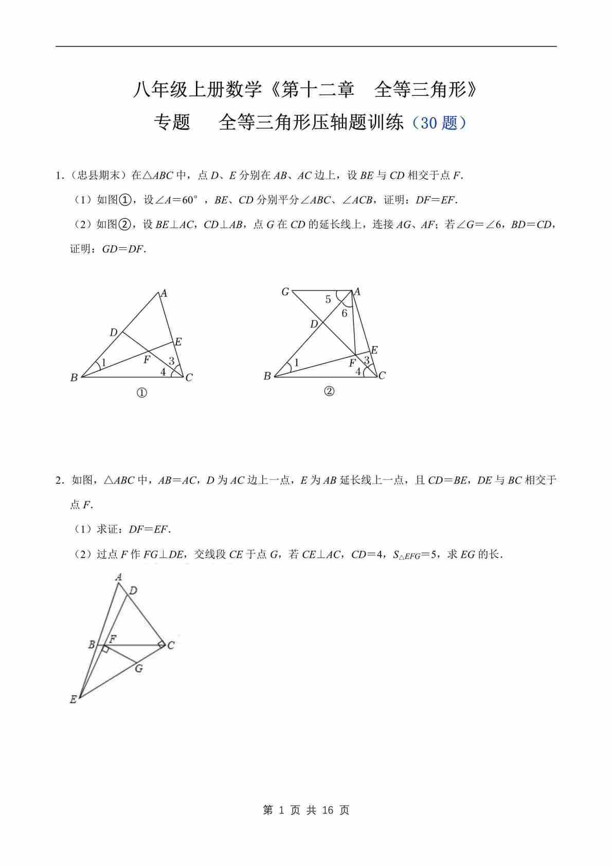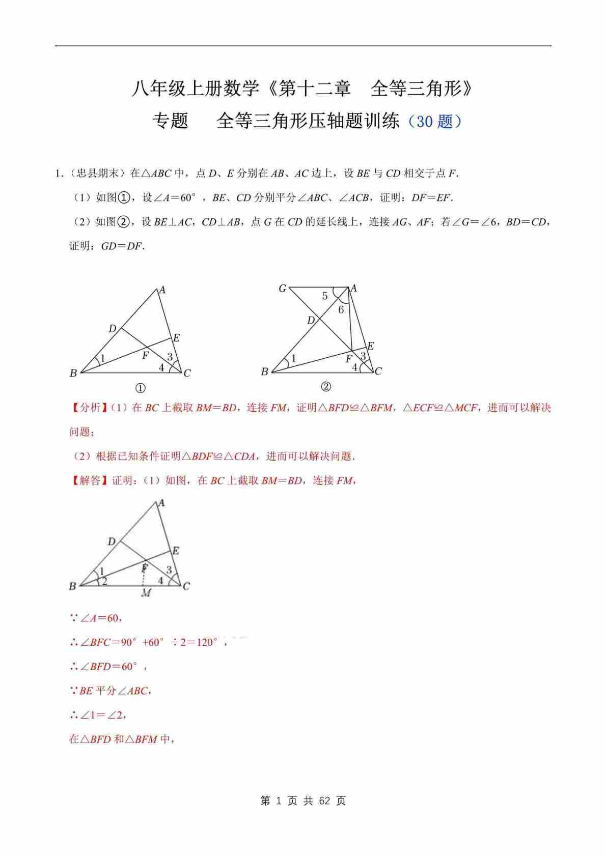 八年级上册数学全等三角形30道压轴题(原卷版)