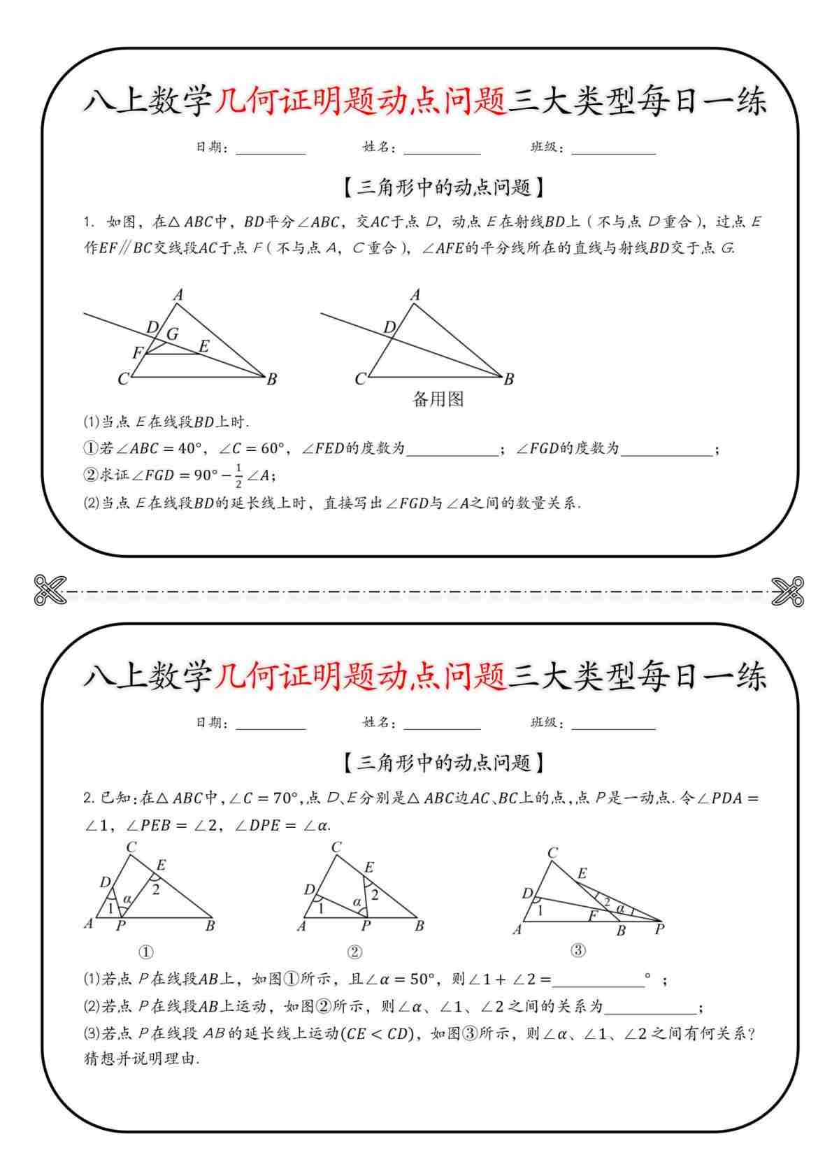 八上数学几何证明题动点问题三大类型每日一练【题型1:三角形中的动点问题】