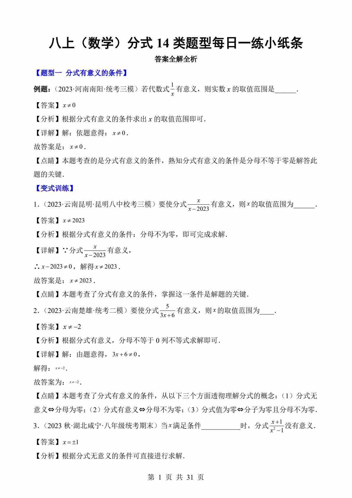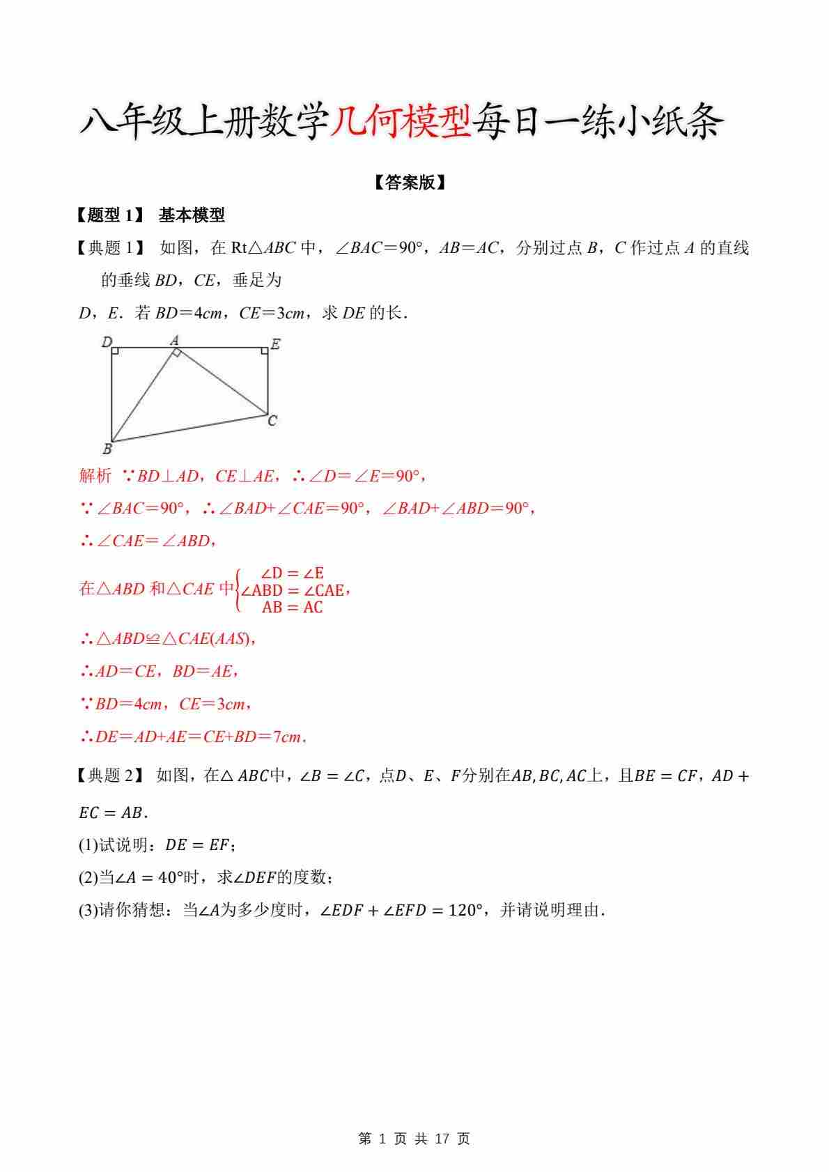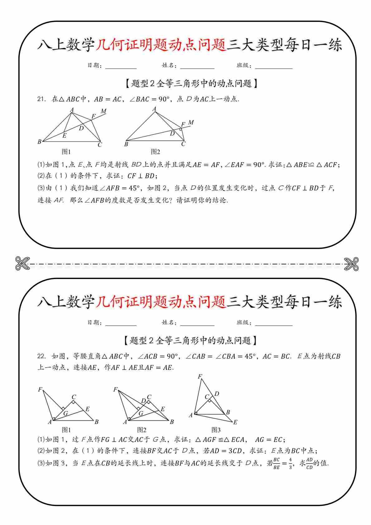 八上数学几何证明题动点问题三大类型每日一练【答案解析】