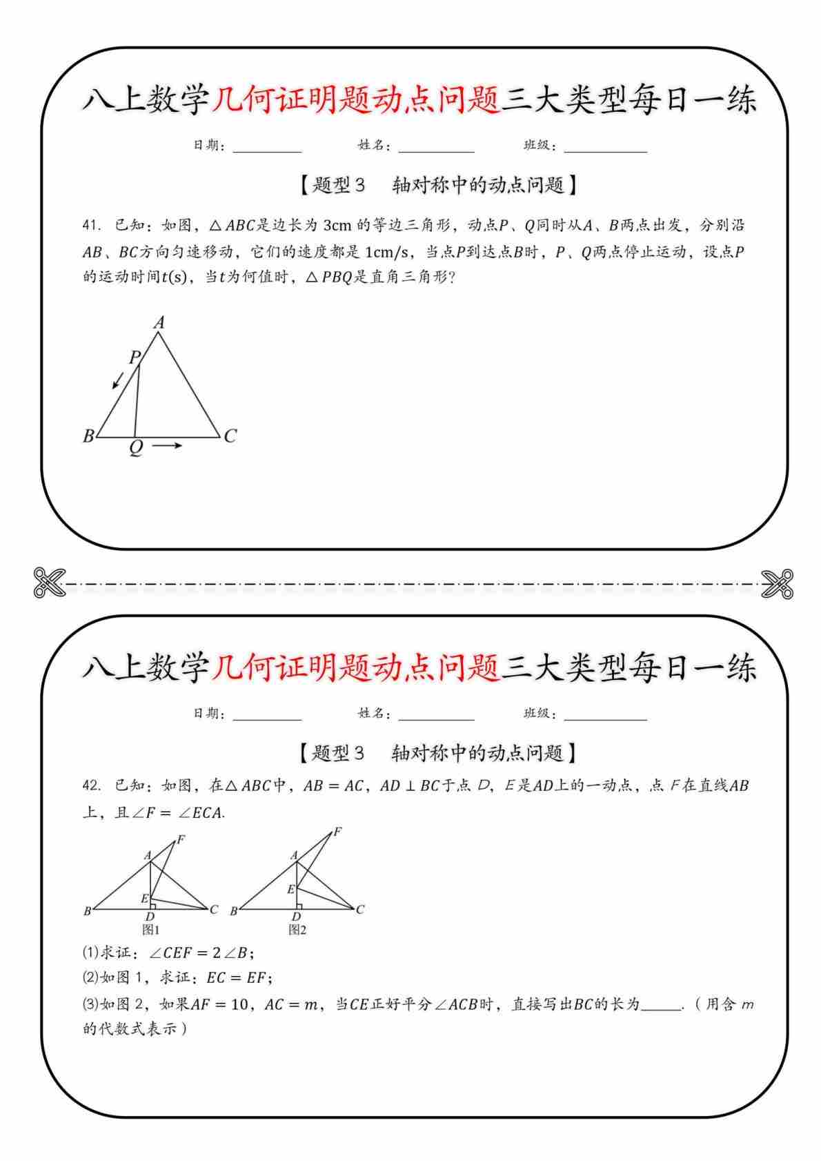 八上数学几何证明题动点问题三大类型每日一练【题型3:轴对称中的动点问题】