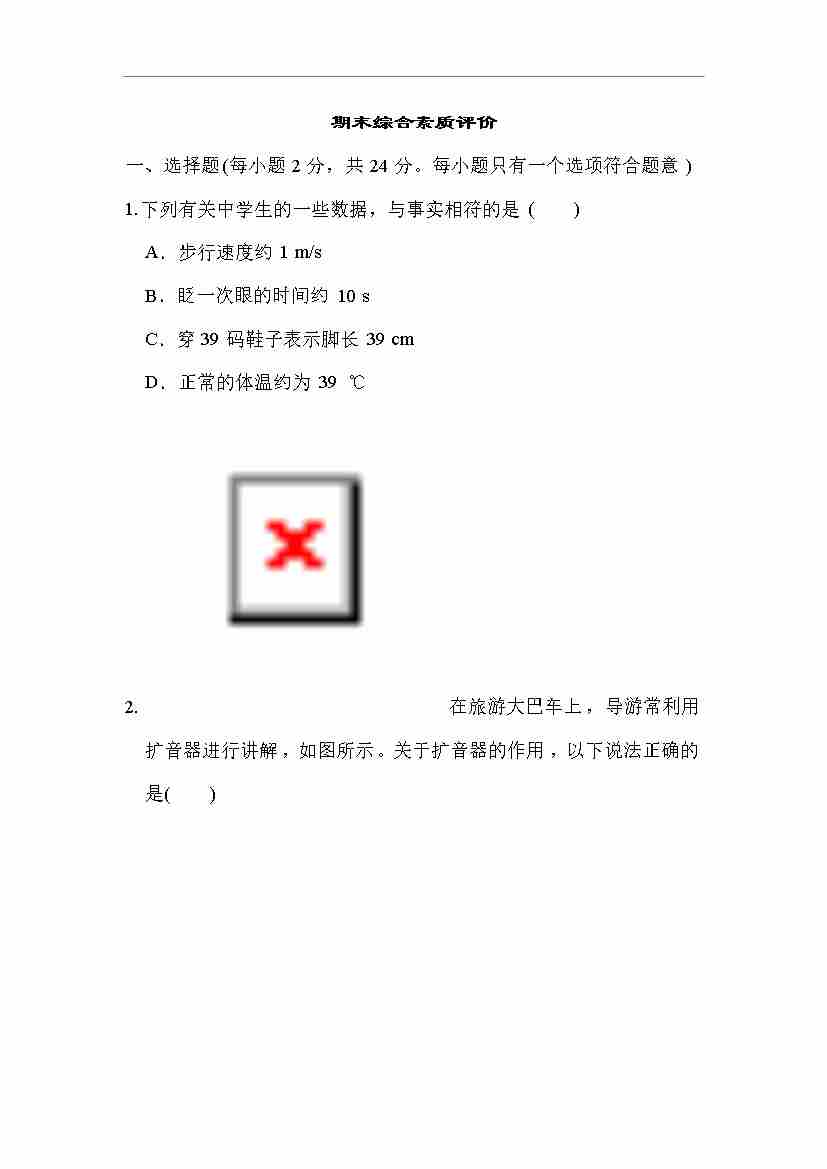 苏科版 物理八年级上册 期末综合素质评价(含答案)