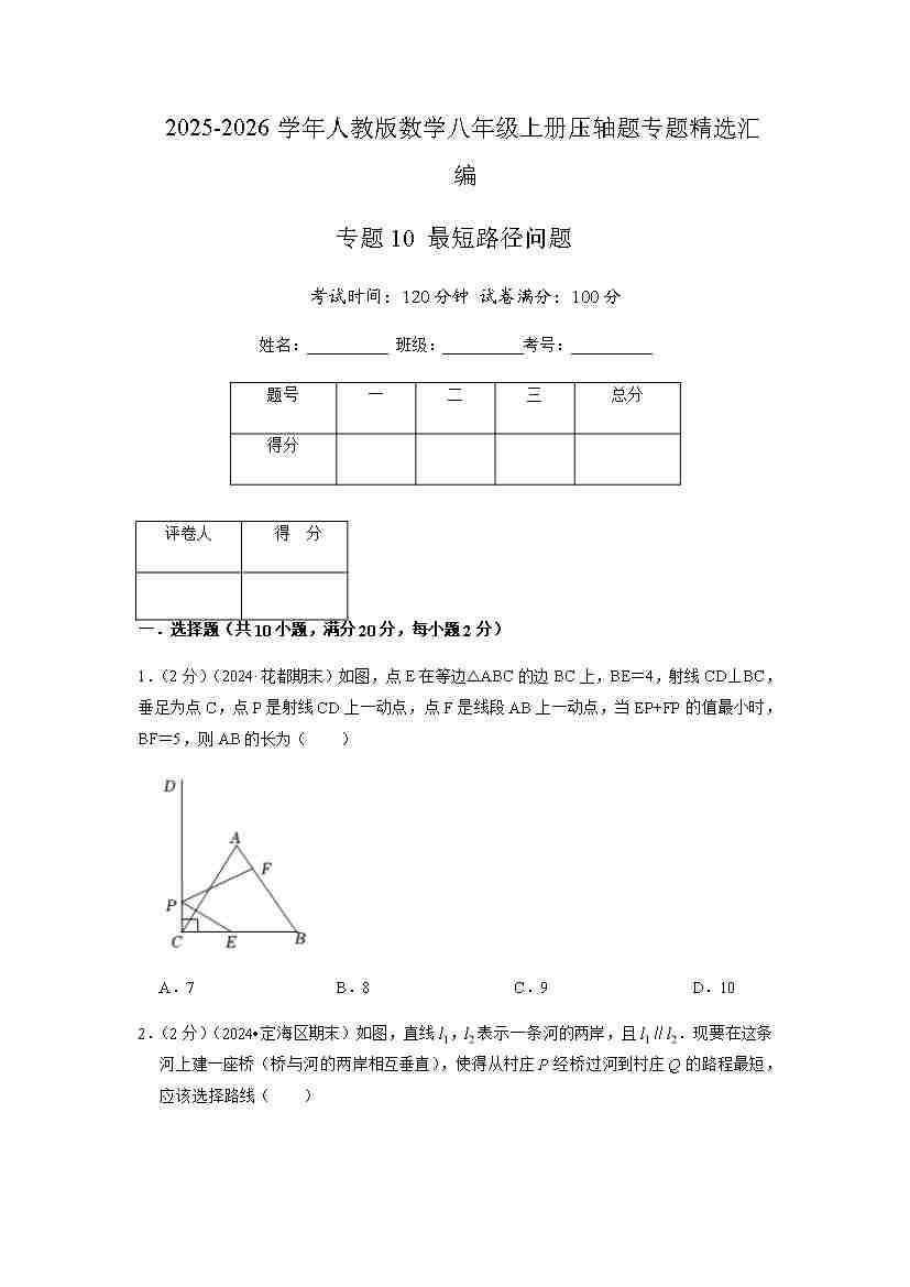 专题10 最短路径问题(原卷版)
