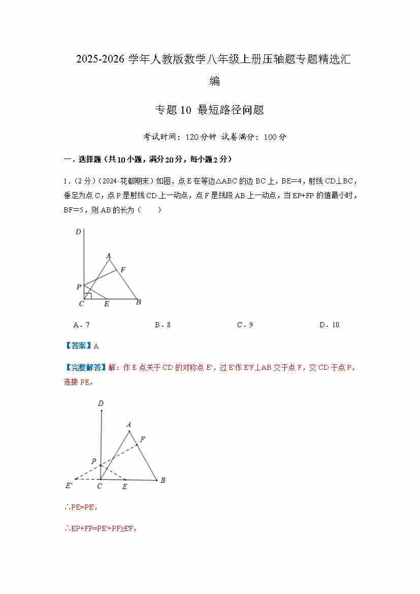 专题10 最短路径问题(解析版)