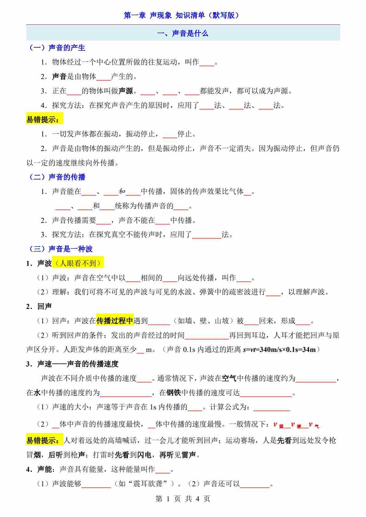 第1章 声现象(知识清单-背诵版)