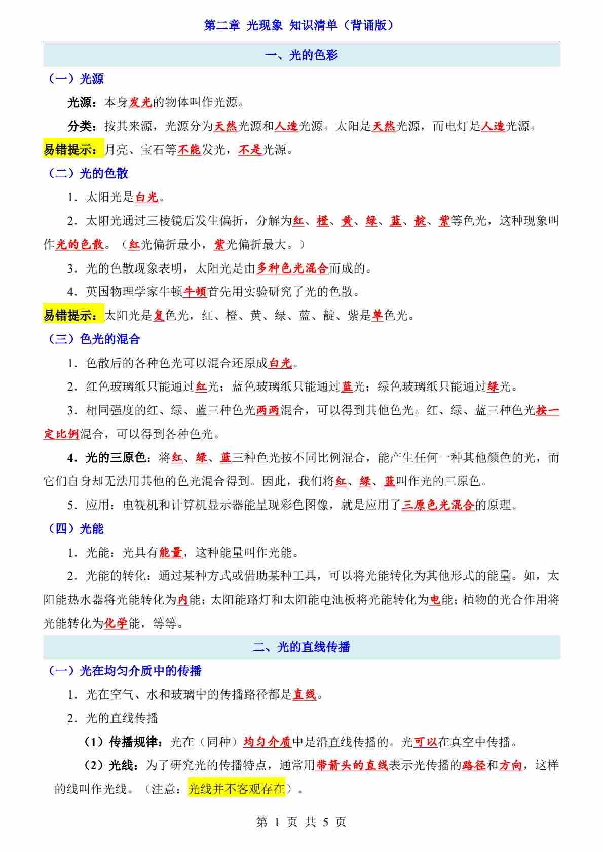第2章 光现象(知识清单-背诵版)