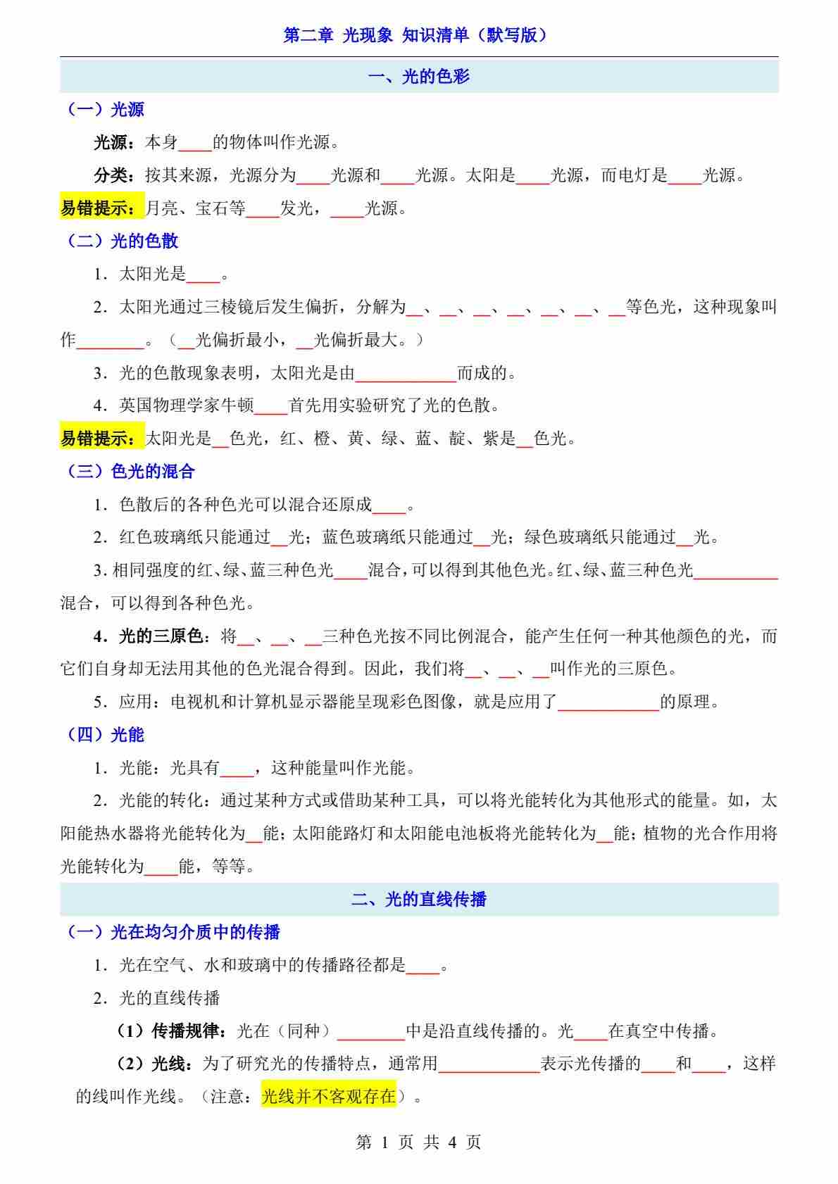 第2章 光现象(知识清单-默写版)