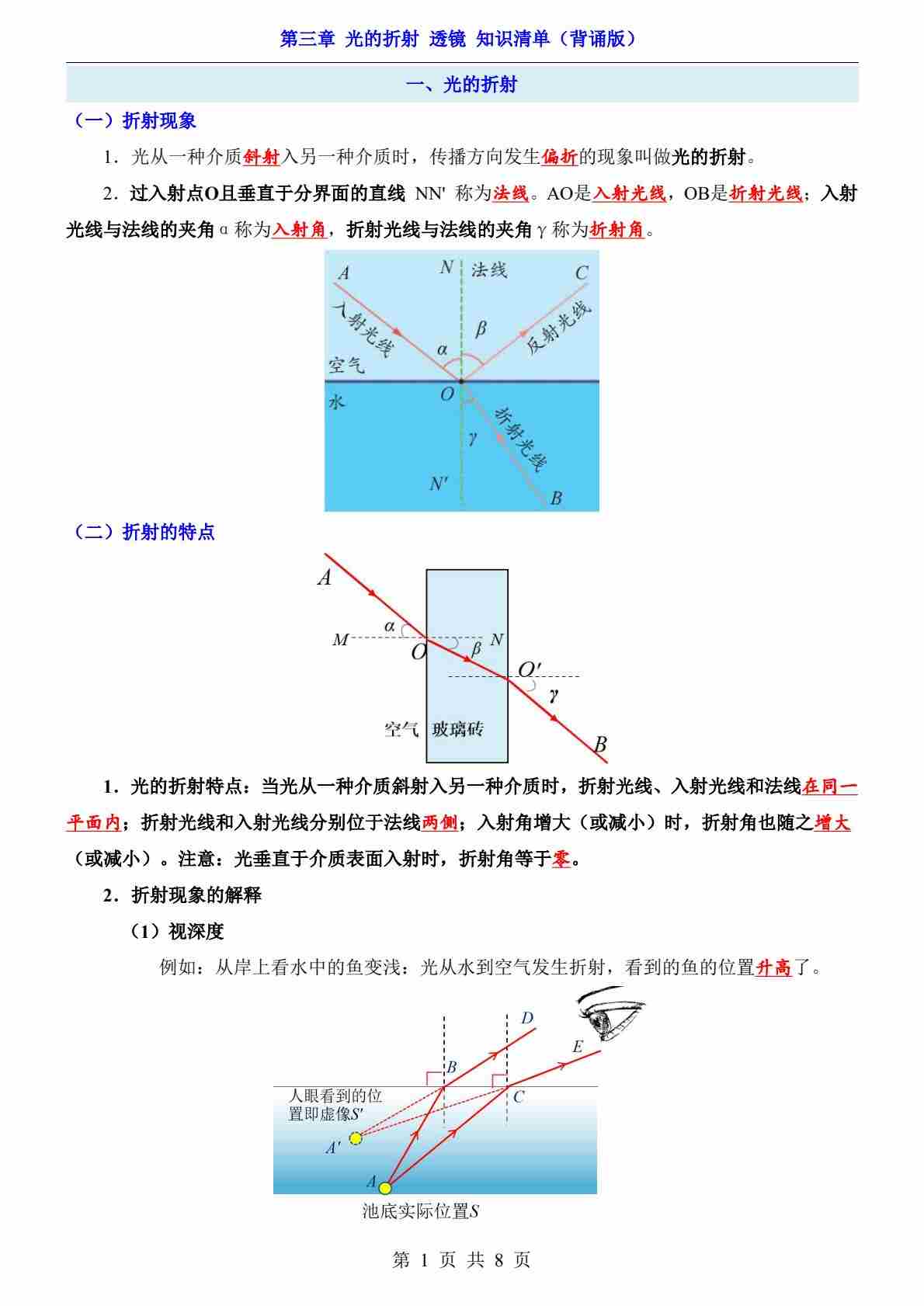 第3章 光的折射 透镜(知识清单-背诵版)