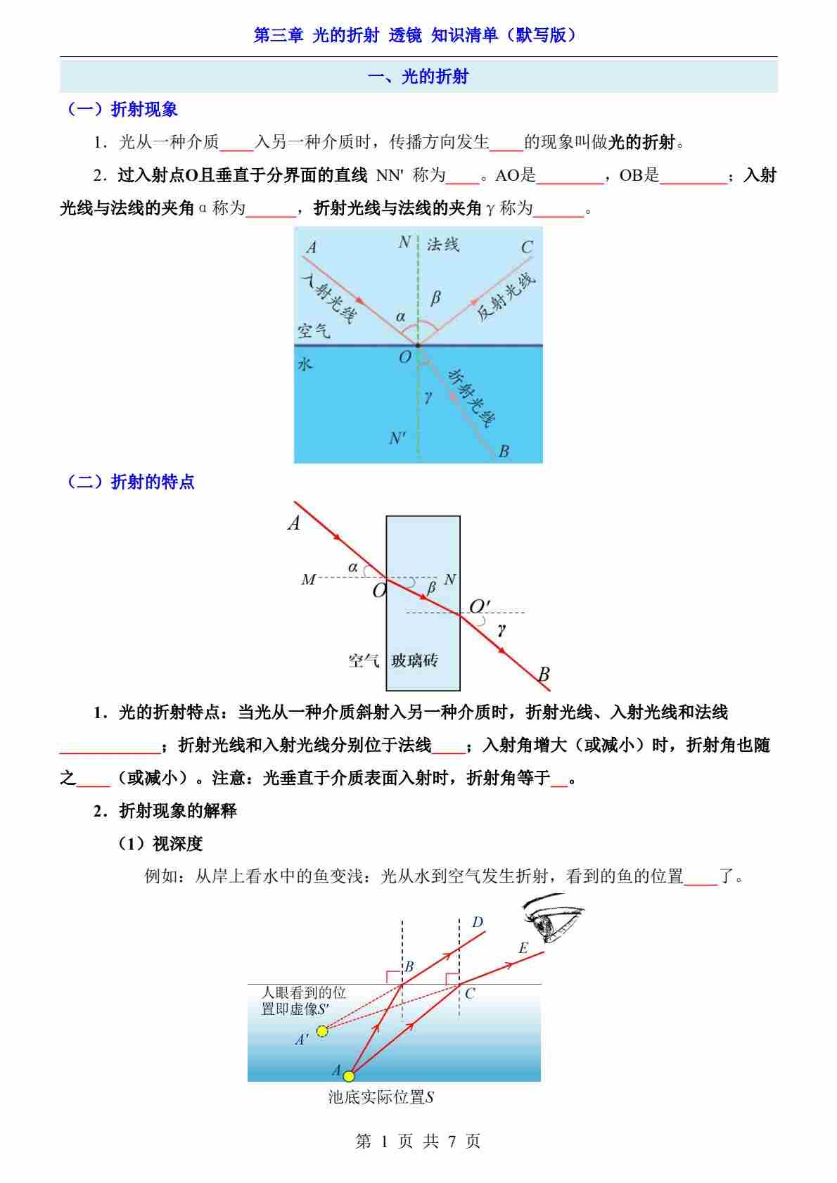 第3章 光的折射 透镜(知识清单-默写版)
