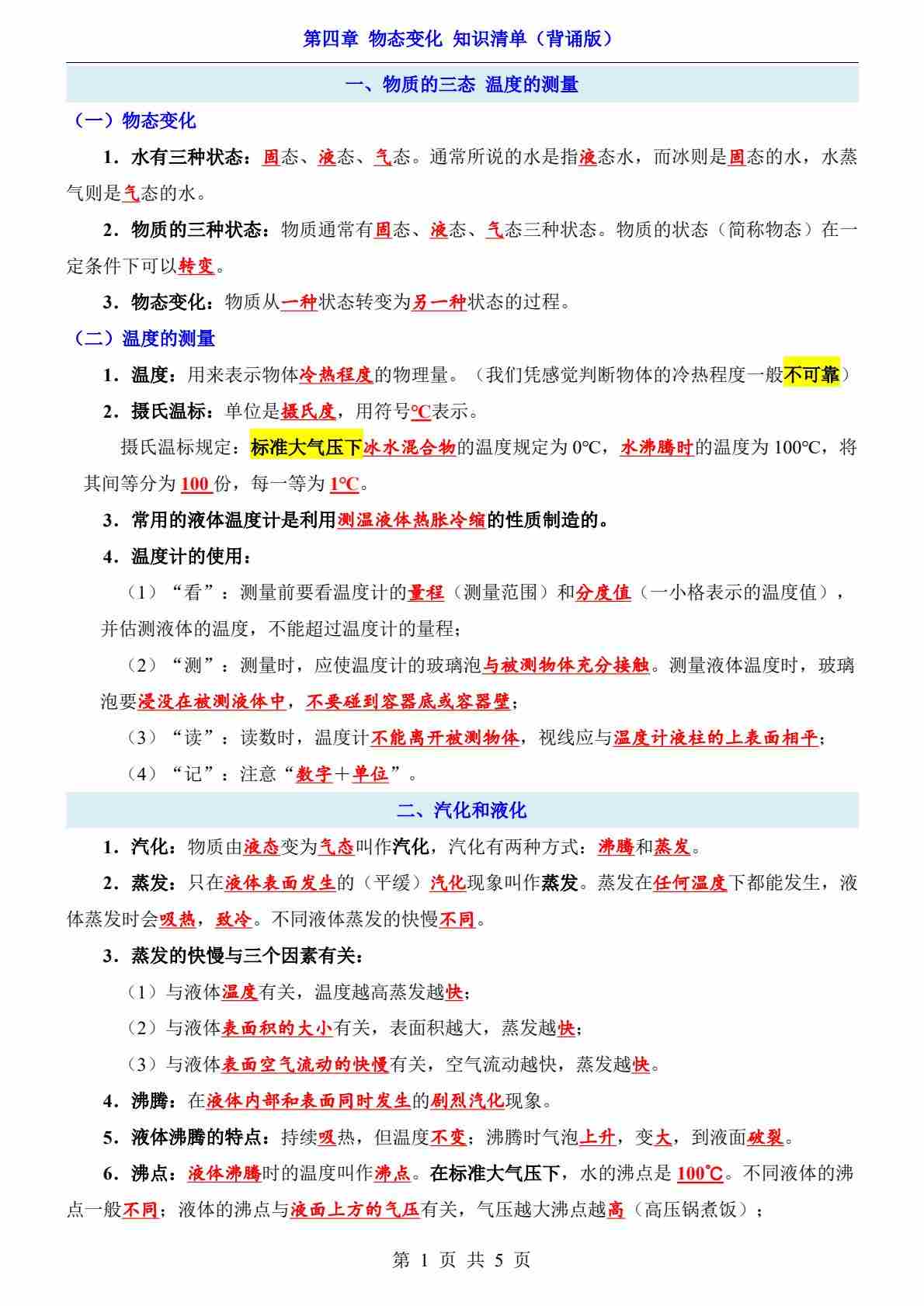 第4章 物态变化(知识清单-背诵版)