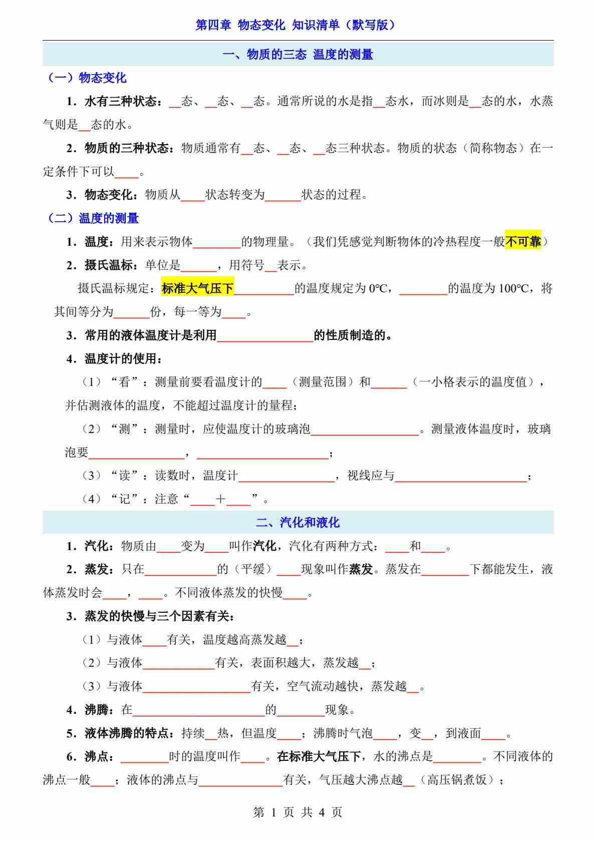 第4章 物态变化(知识清单-默写版)