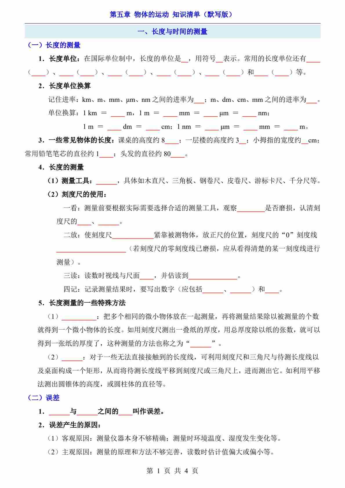 第5章 物体的运动(知识清单-默写版)