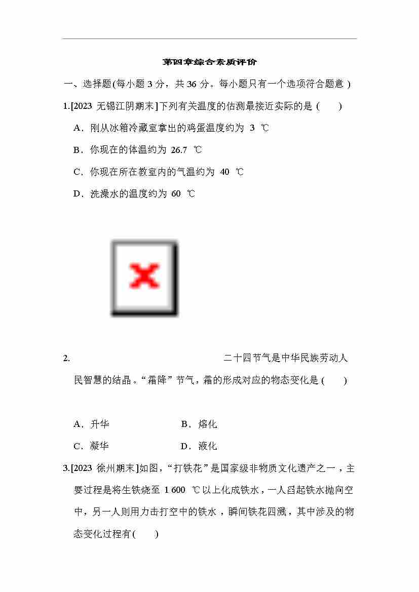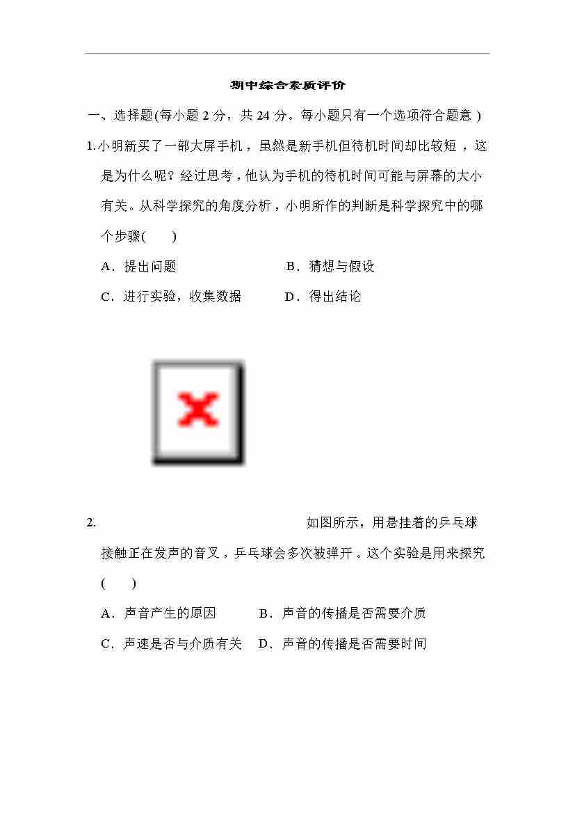 苏科版 物理八年级上册 期中综合素质评价 期中综合素质评价 (含答案)