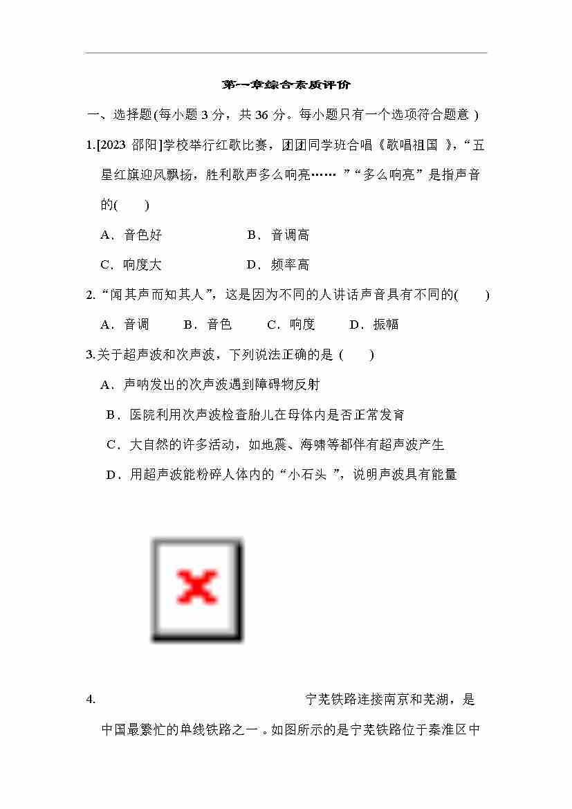 苏科版 物理八年级上册 第二章综合素质评价(含答案)