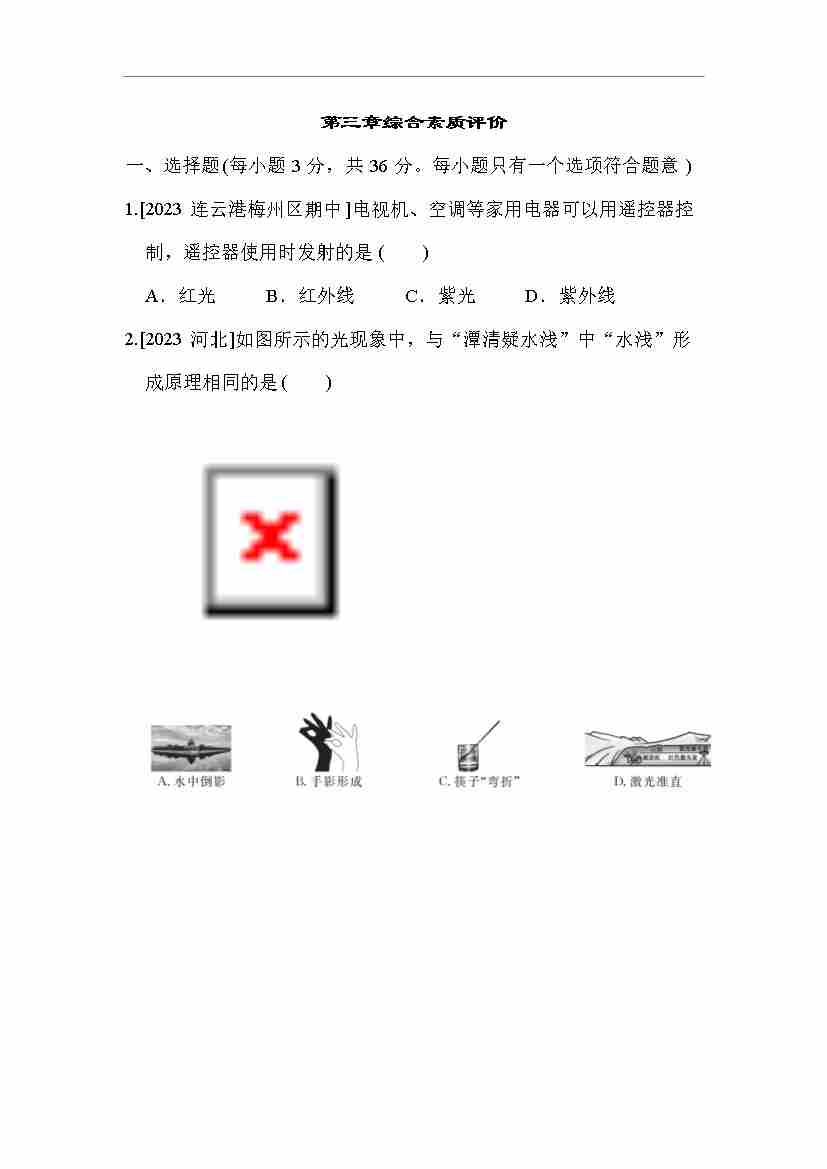 苏科版 物理八年级上册 第三章综合素质评价(含答案)