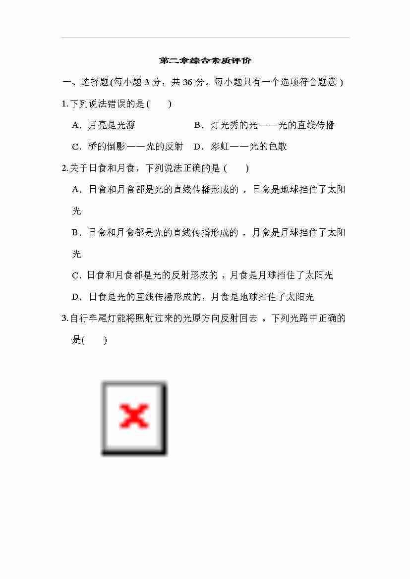 苏科版 物理八年级上册 第五章综合素质评价(含答案)