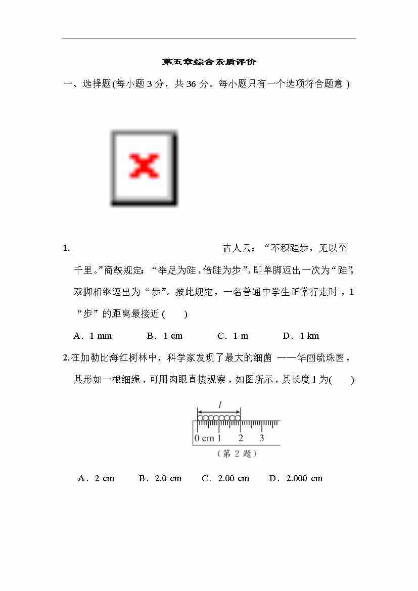 苏科版 物理八年级上册 第一章综合素质评价(含答案)