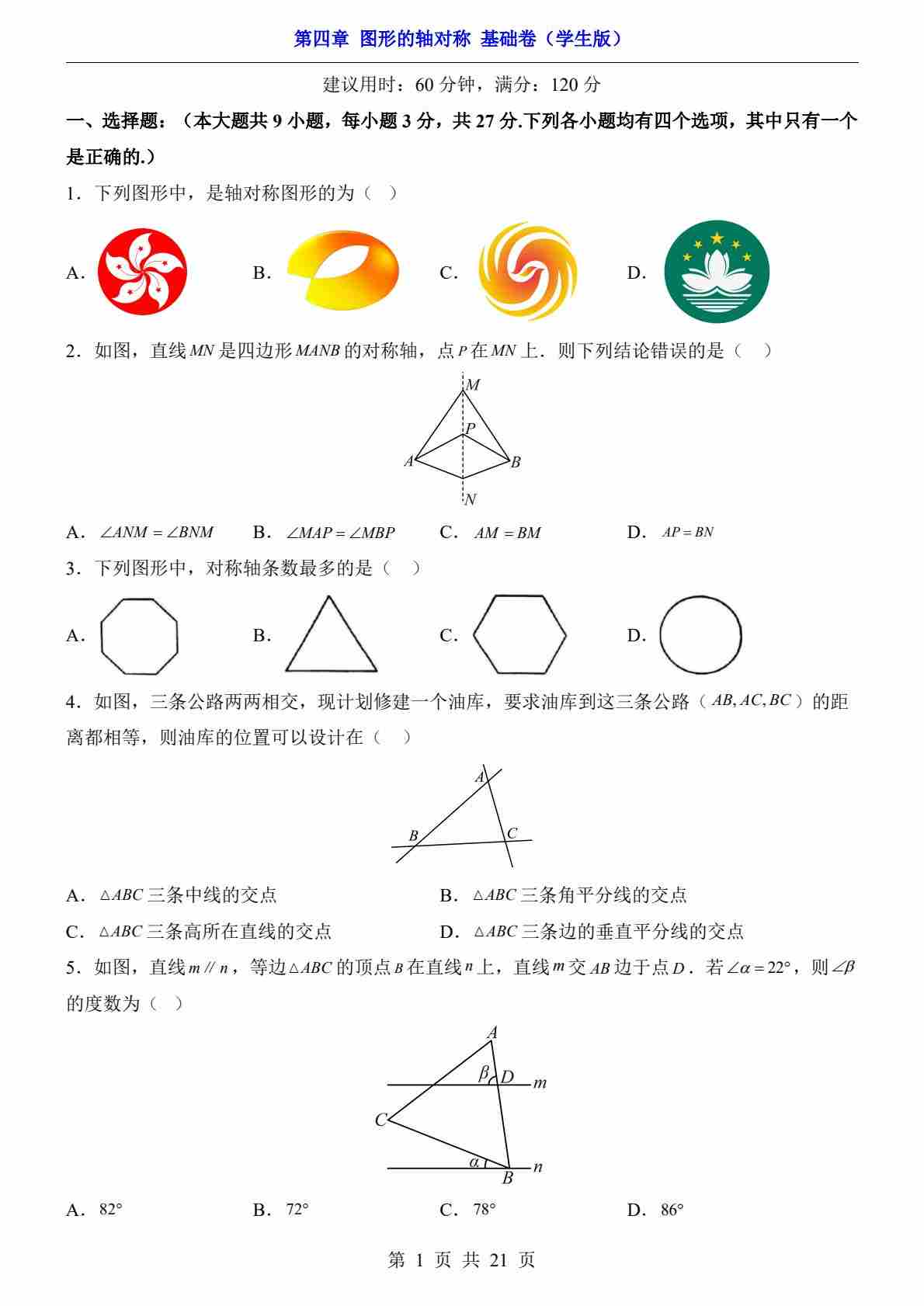 2.1全等三角形(题型专练)(原卷版)青岛版