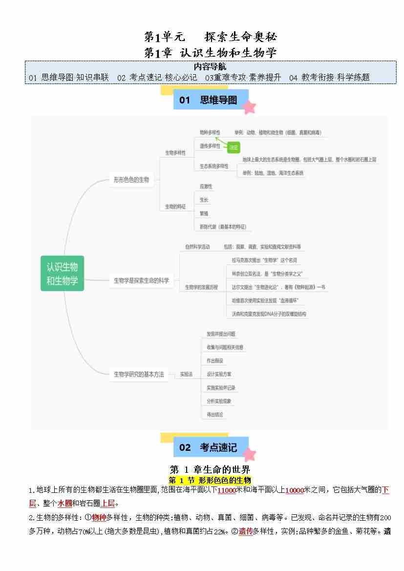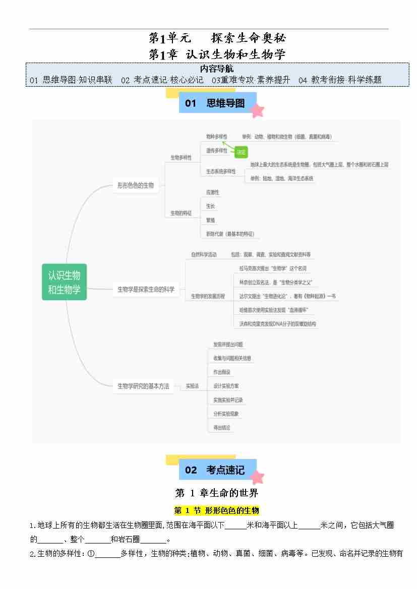 第1章 认识生物和生物学【速记清单】(原卷版)-七年级上册生物(新北师大版)
