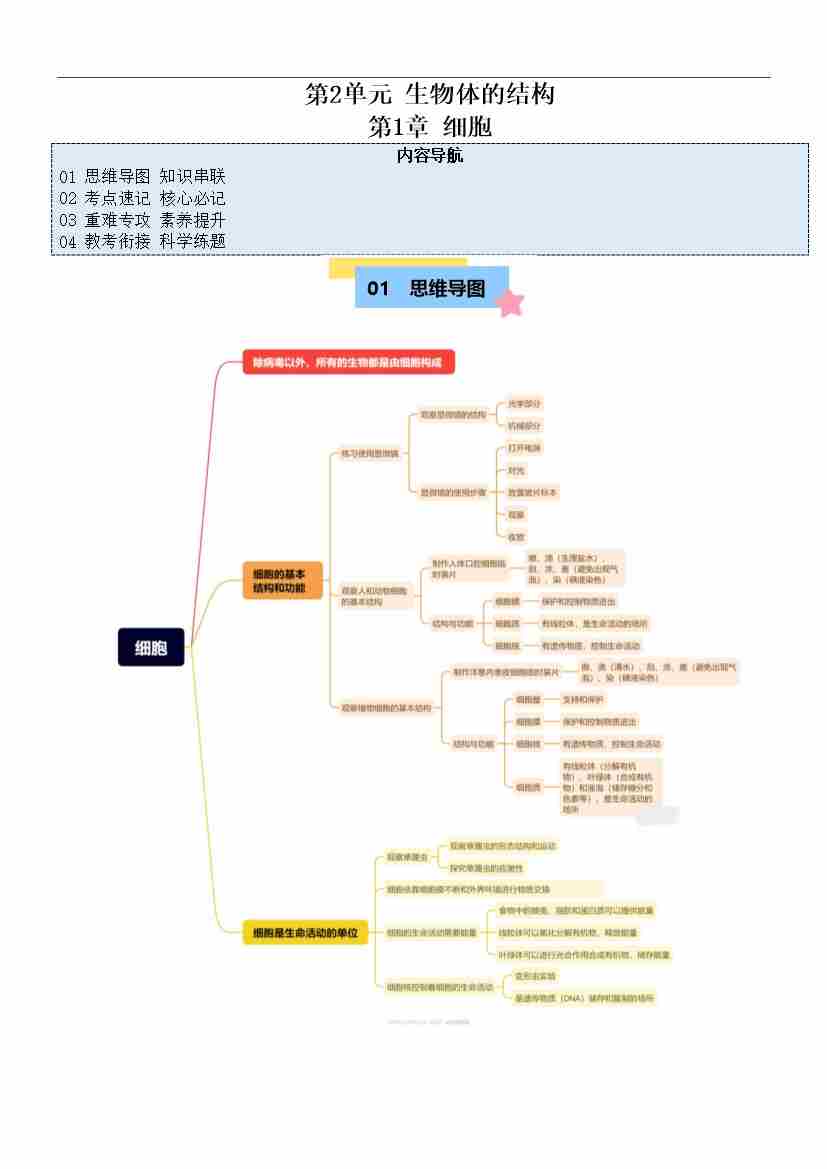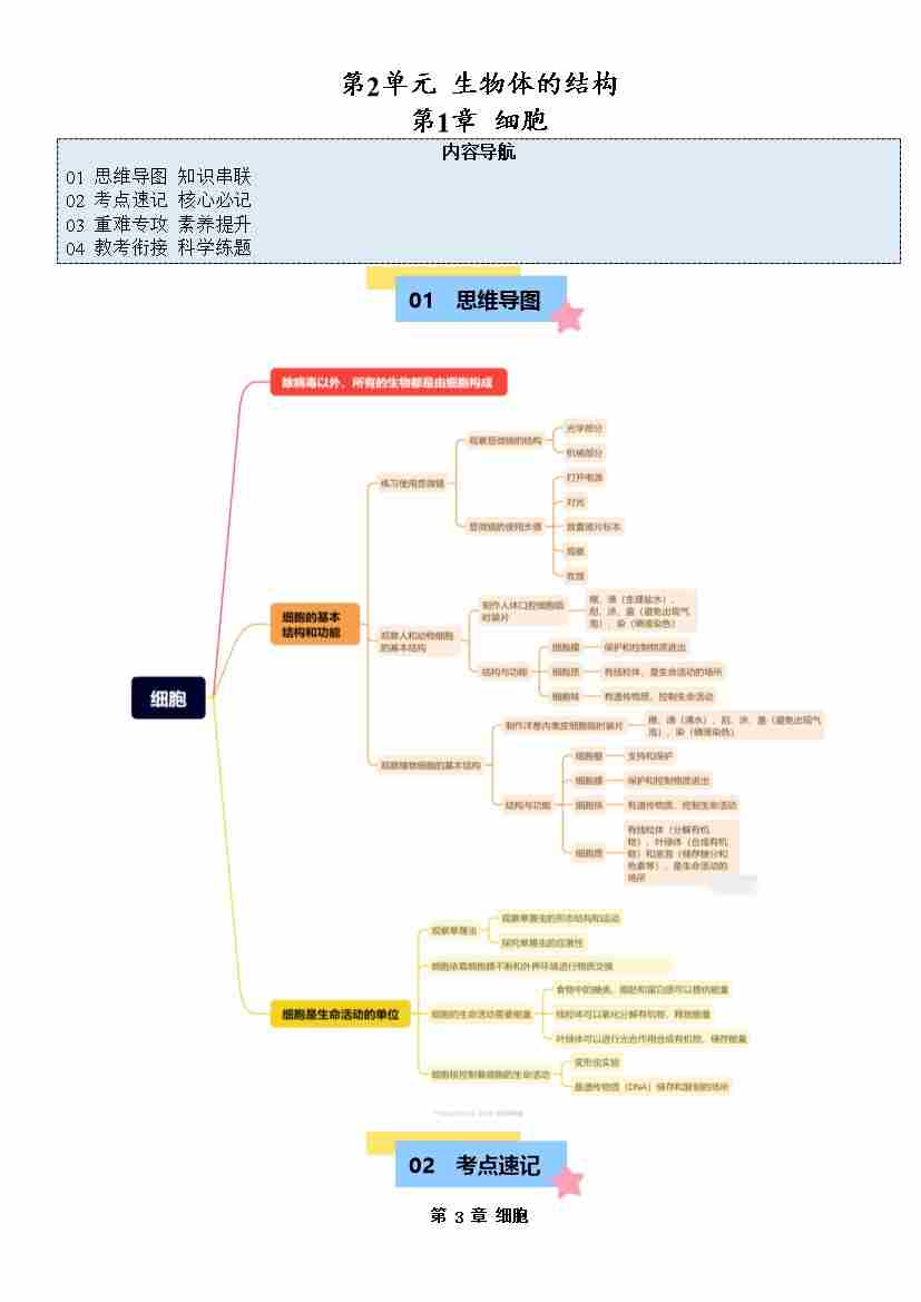 第2章 细胞【速记清单】(原卷版)-七年级上册生物(新北师大版)