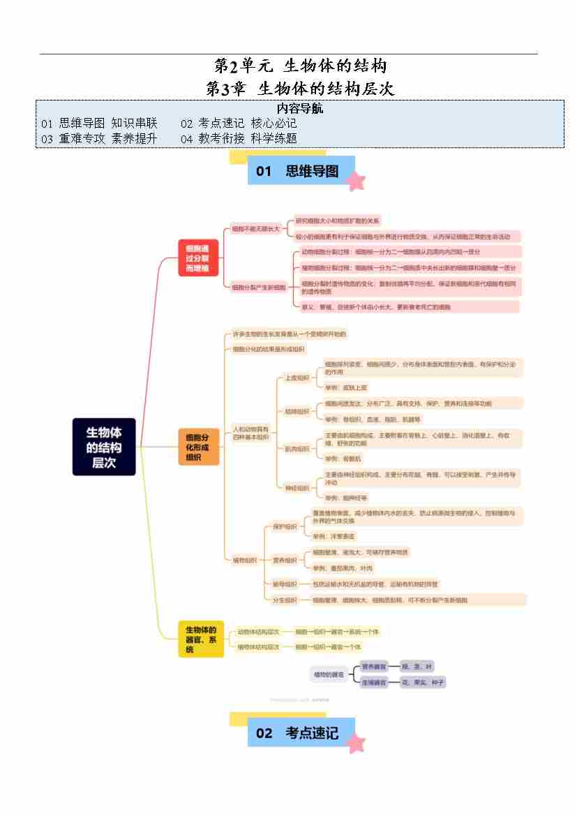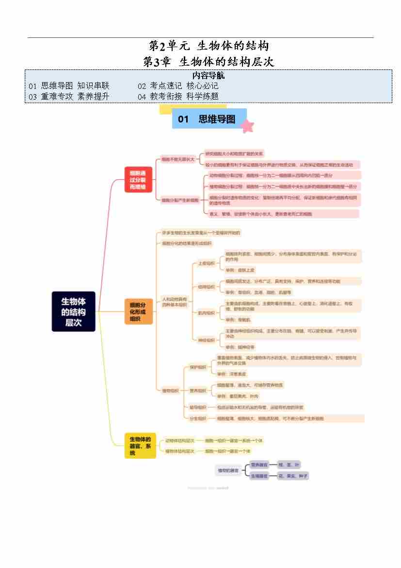 第3章 生物体的结构层次【速记清单】(原卷版)-七年级上册生物(新北师大版)