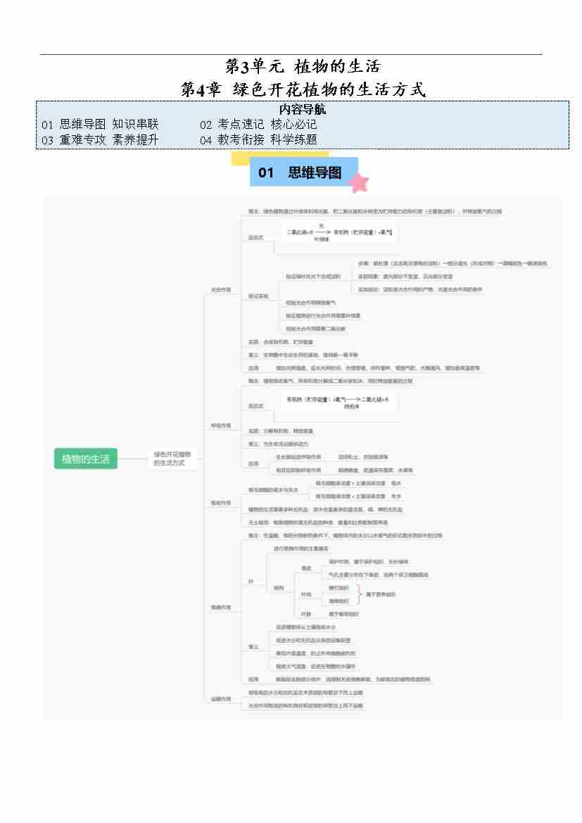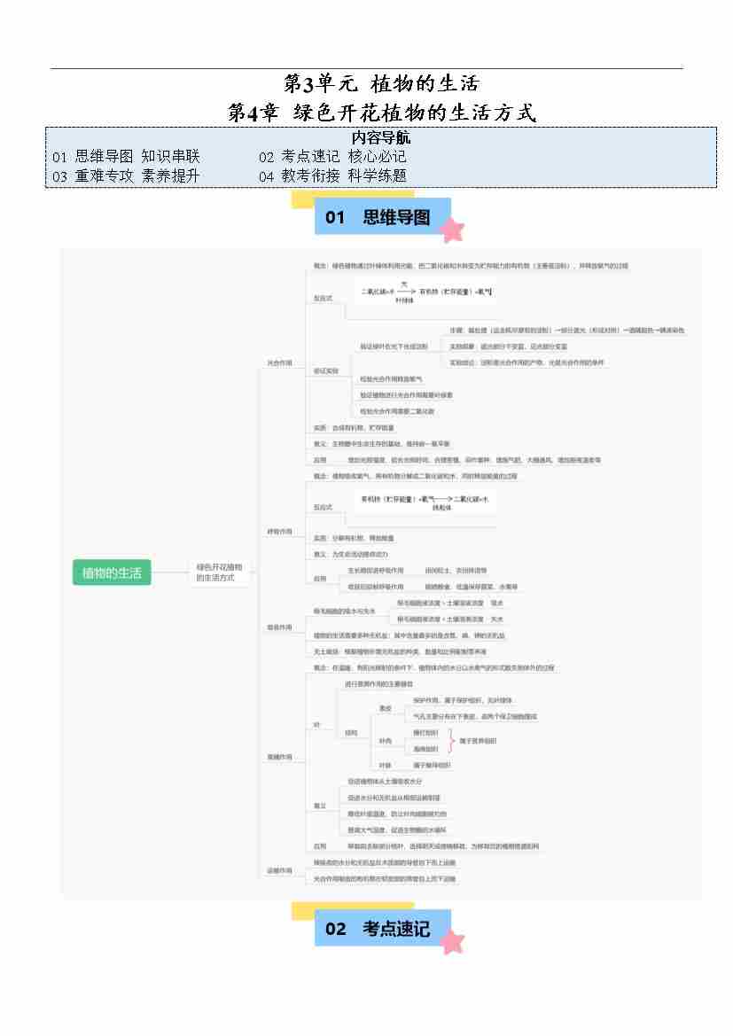 第4章 绿色开花植物的生活方式【速记清单】(解析版)-七年级上册生物(新北师大版)