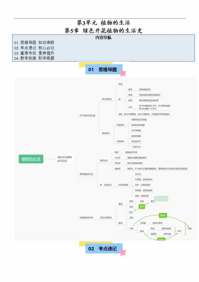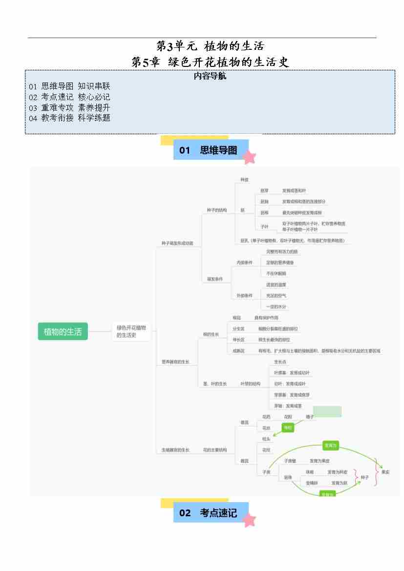 第5章 绿色开花植物的生活史【速记清单】(原卷版)-七年级上册生物(新北师大版)