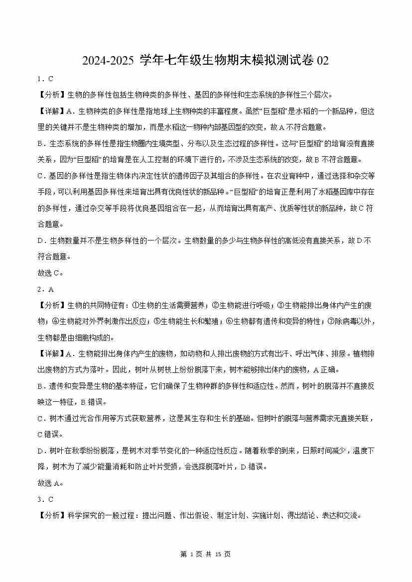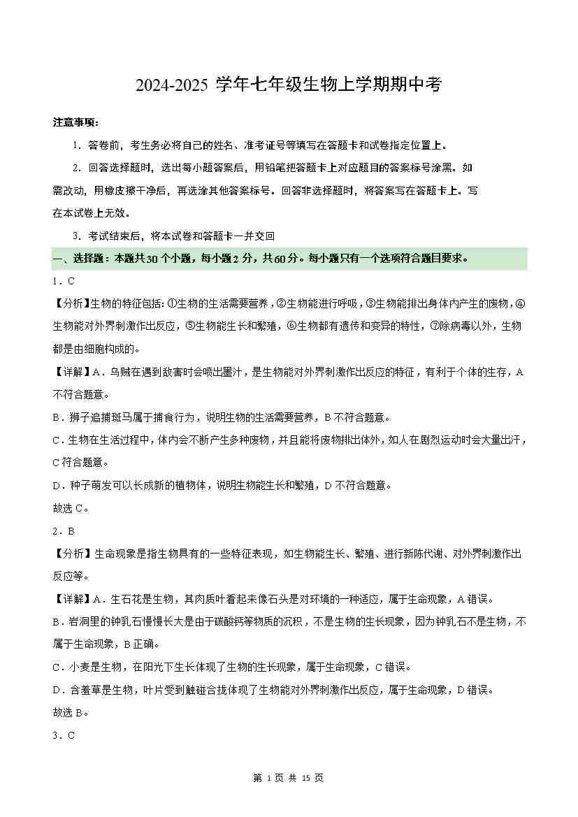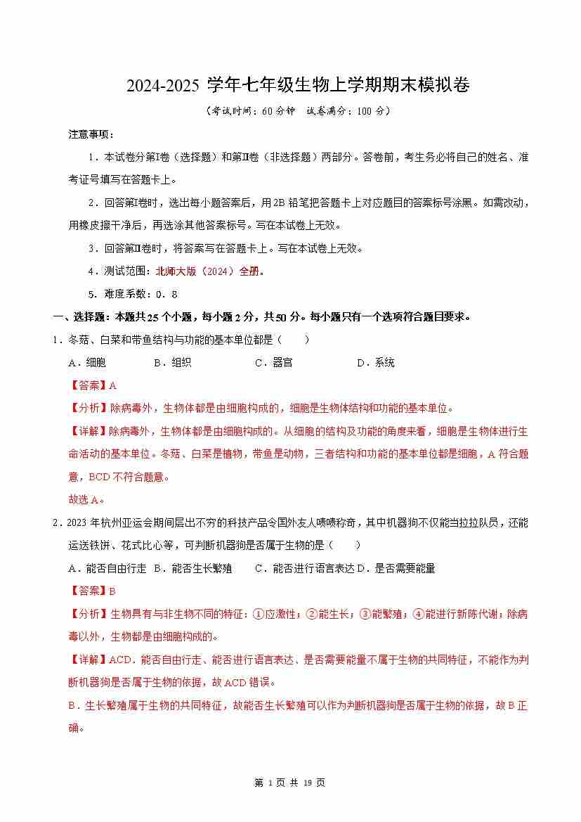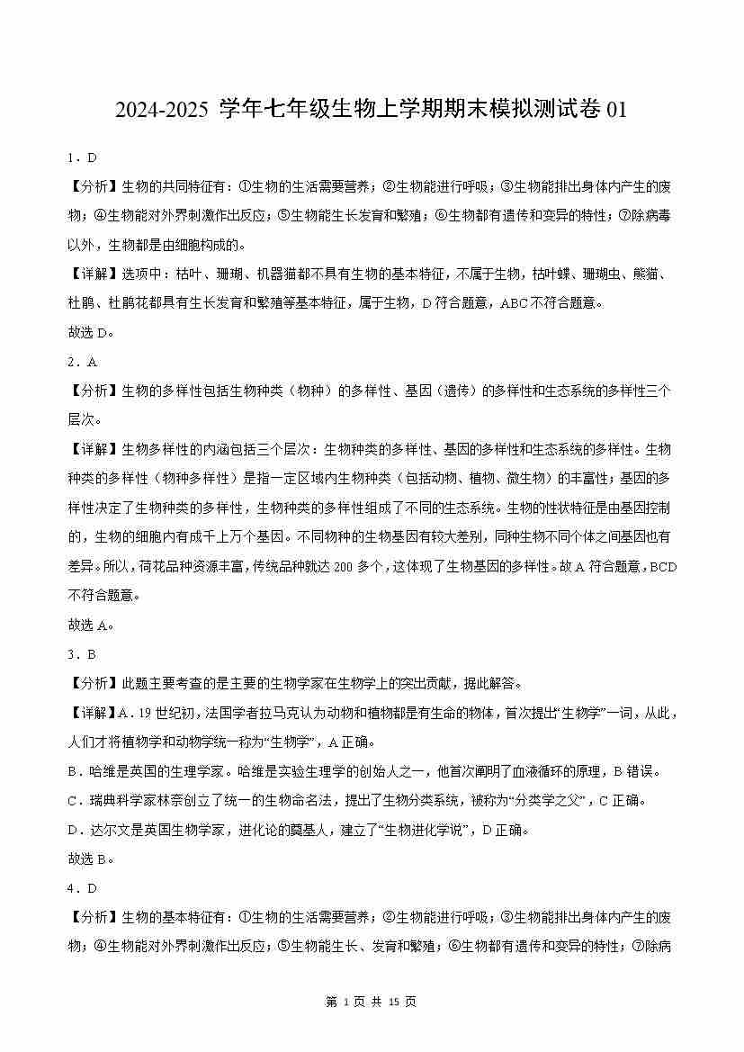 第1章 认识生物和生物学【单元卷·考点卷】(解析版)-七年级上册生物(新北师大版)