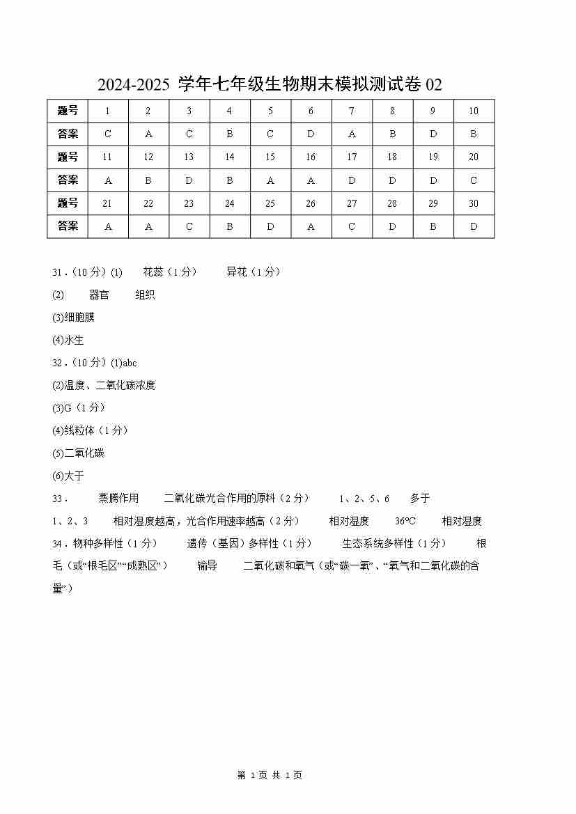 第3章 生物体的结构层次(考题猜想50题)(解析版)docx