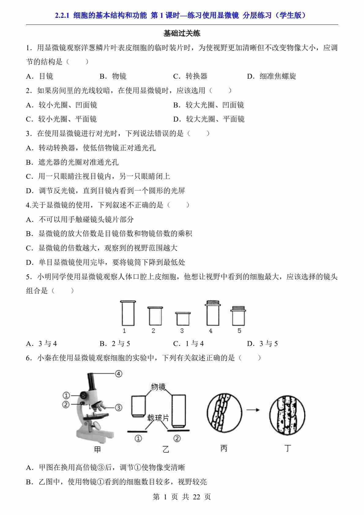2.2.1.1 练习使用显微镜(分层练习)