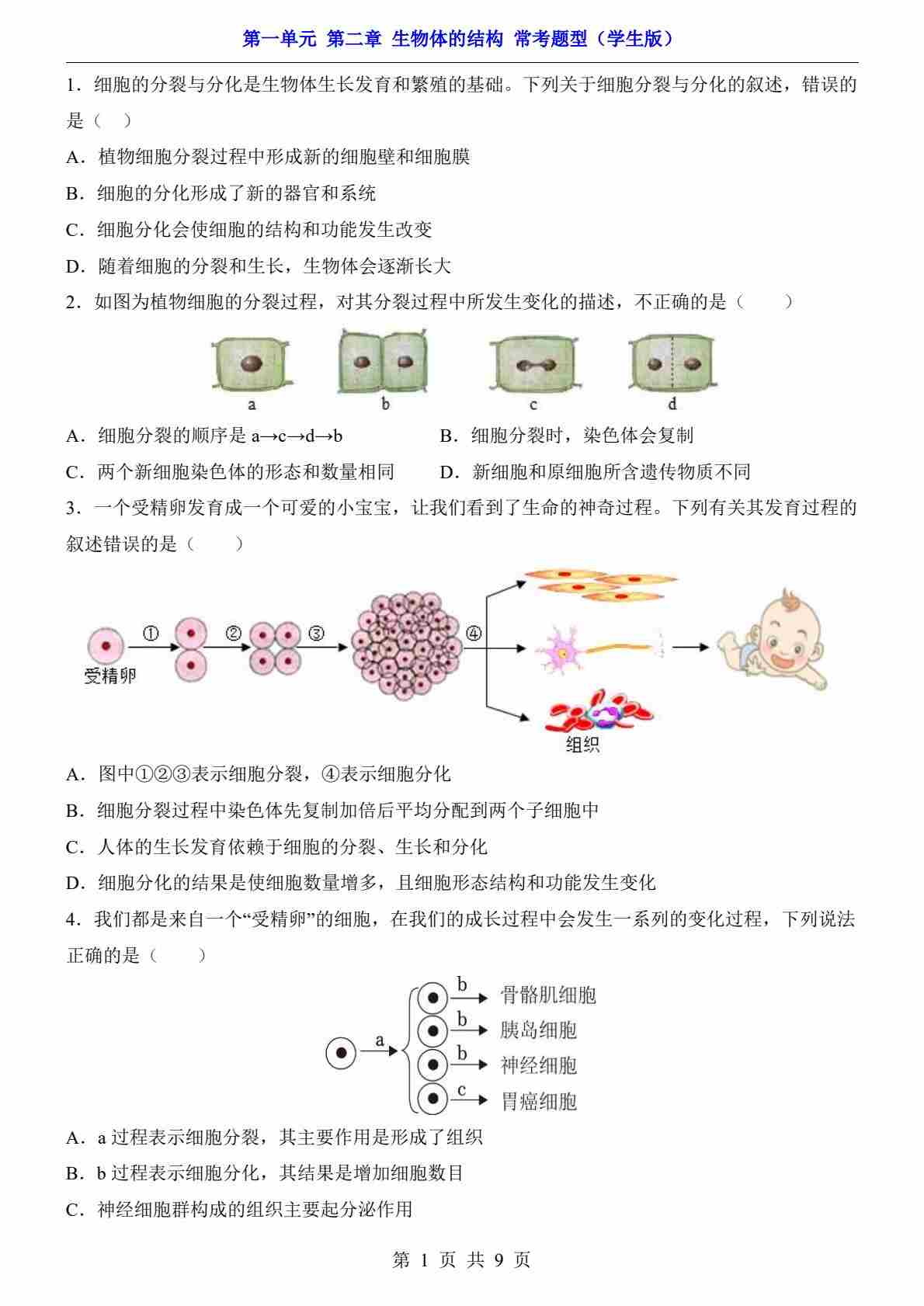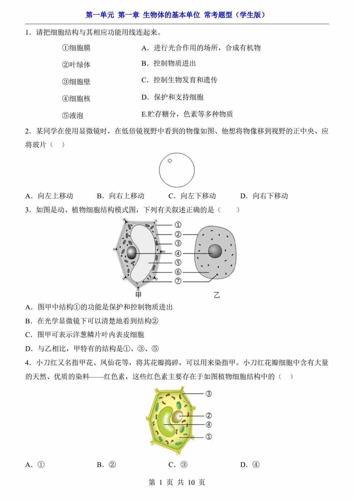 第1单元 第1章 生物体的基本单位(常考题型)