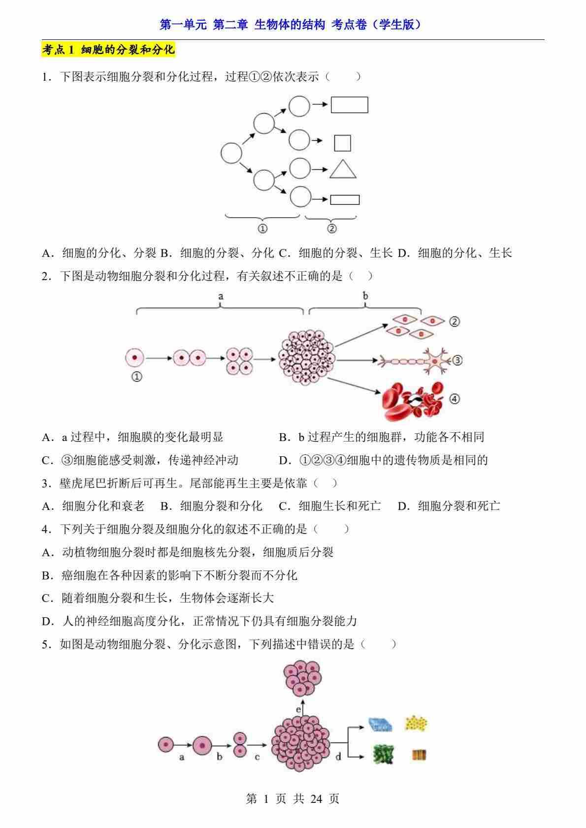 第1单元 第2章 生物体的结构(考点卷)