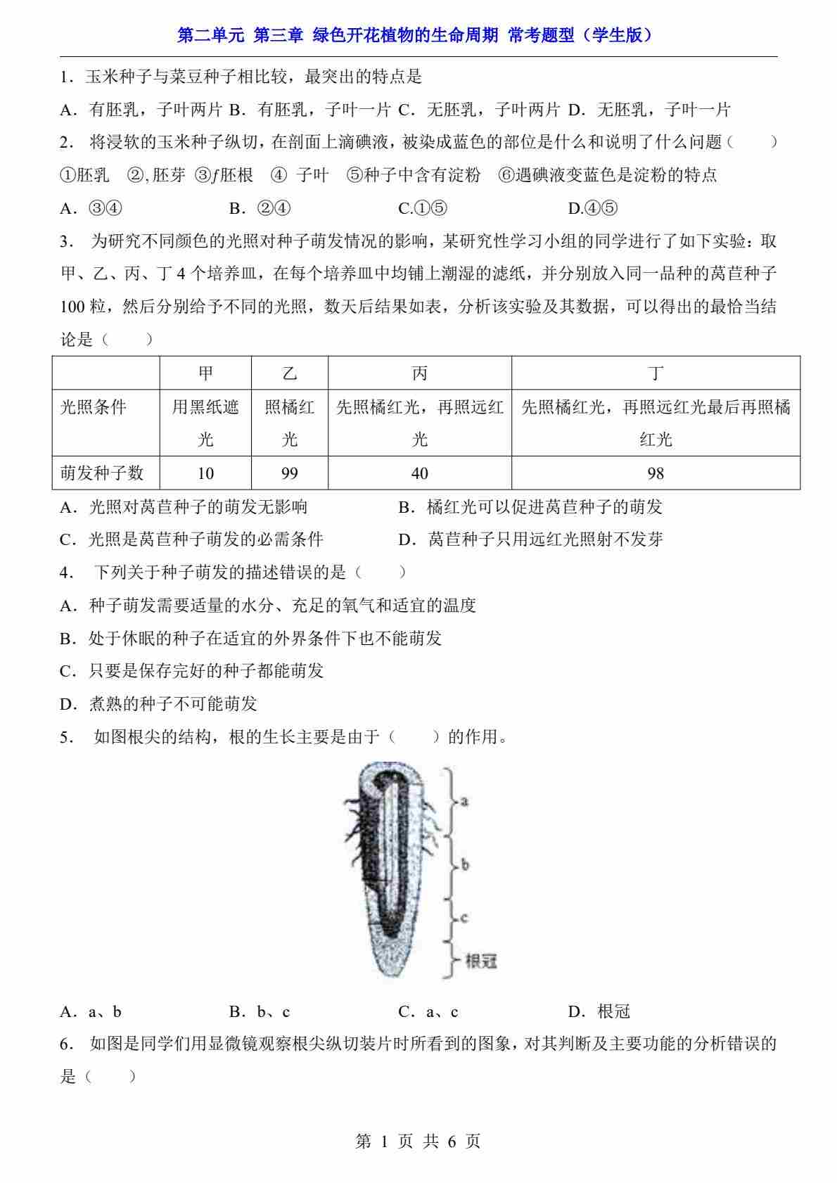 第2单元 第3章 绿色开花植物的生命周期(常考题型)