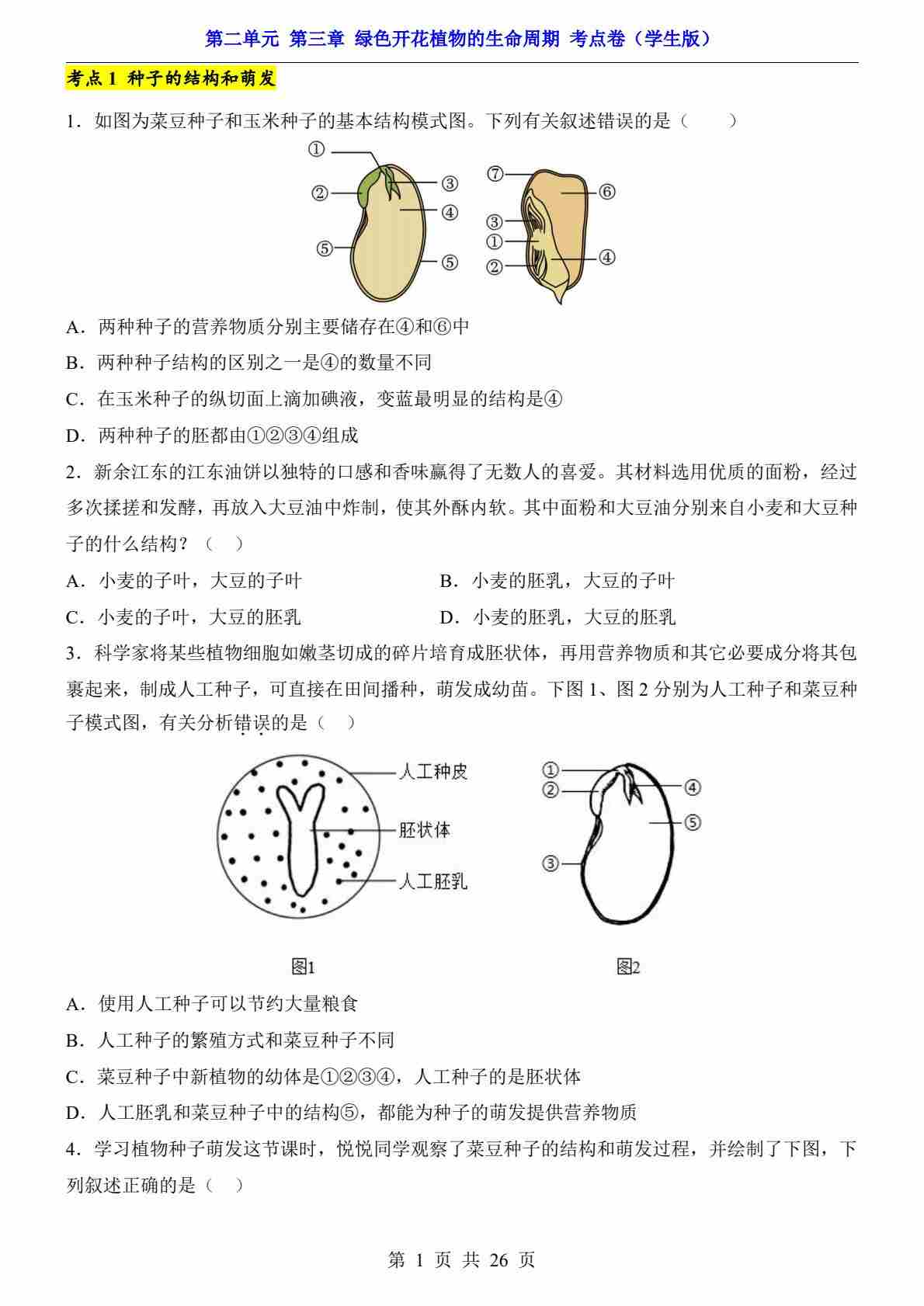 第2单元 第3章 绿色开花植物的生命周期(考点卷)