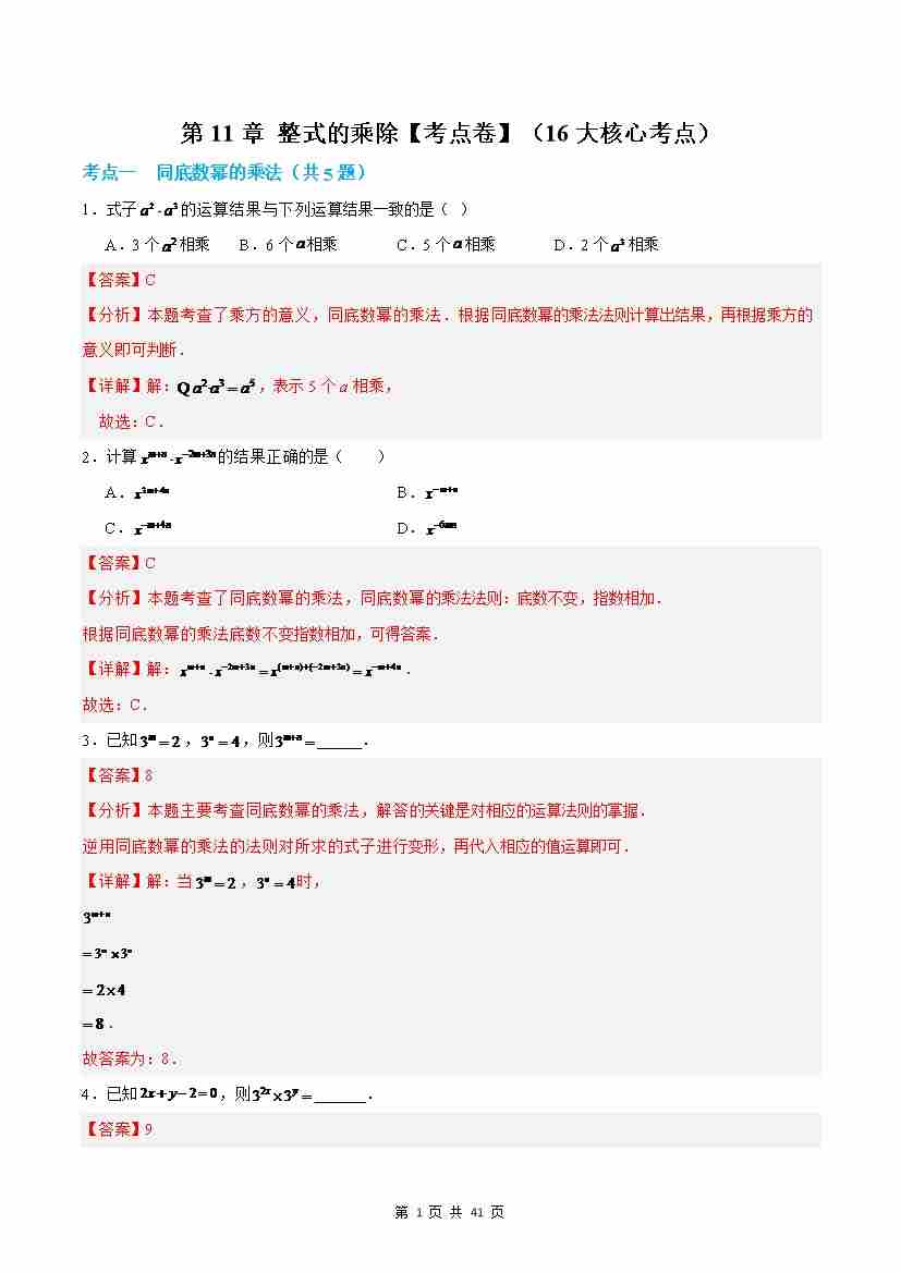 第11章:整式的乘除【考点卷】(沪教版2024)(解析版)