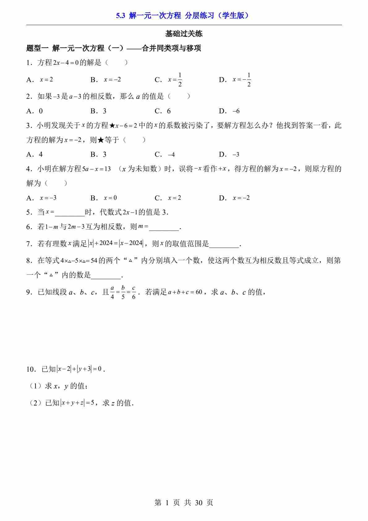 5.3 解一元一次方程(分层练习)