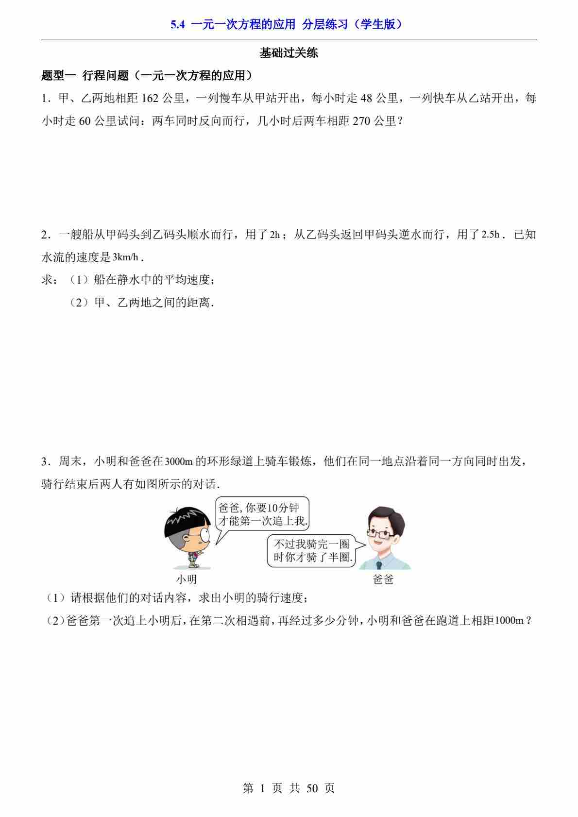5.4 一元一次方程的应用(分层练习)