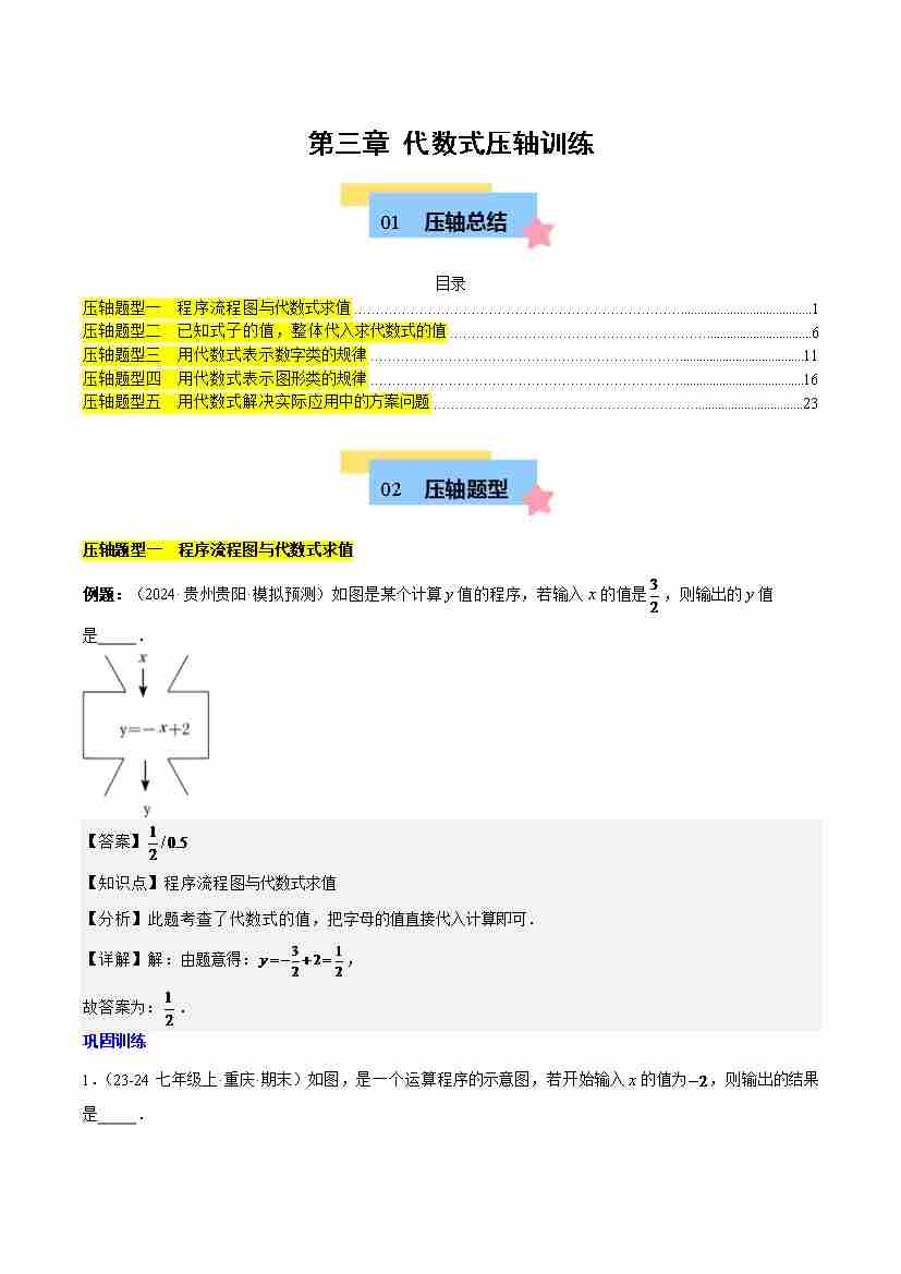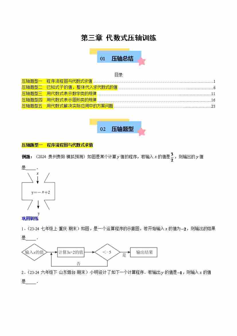 第三章 代数式压轴训练(5类压轴)(原卷版)