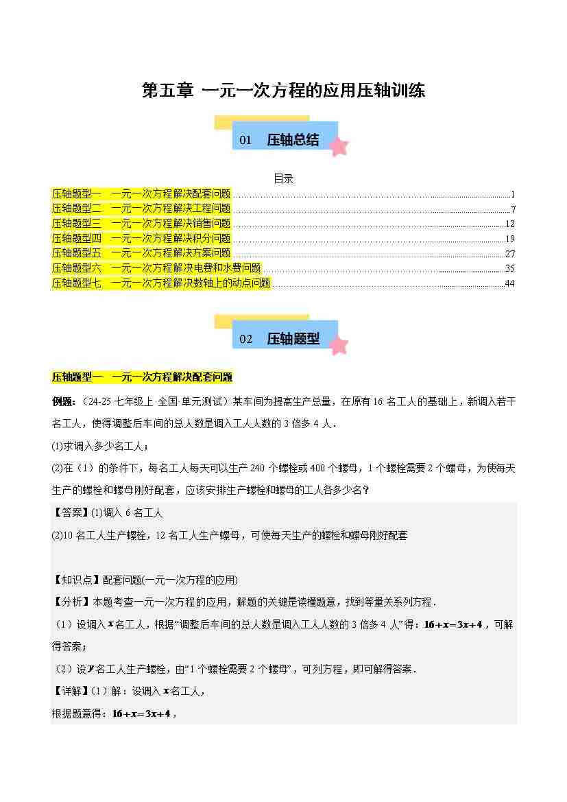 第五章 一元一次方程的应用压轴训练(单元复习 7类压轴)(解析版)