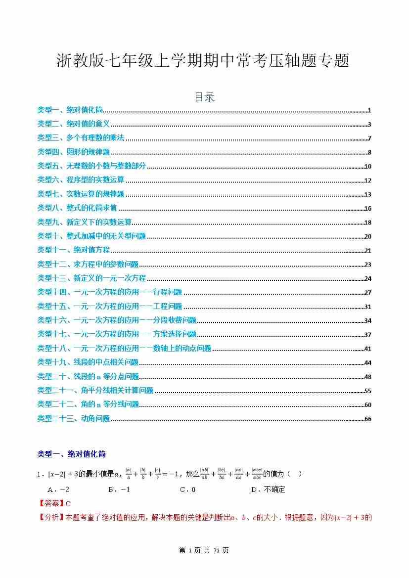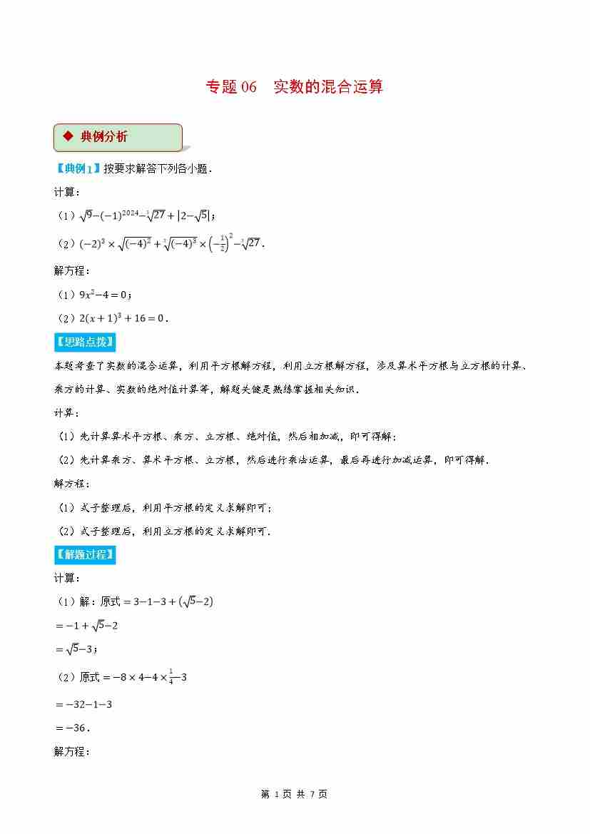 专题01 有理数的加法(计算题专项训练)(浙教版2024)(解析版)