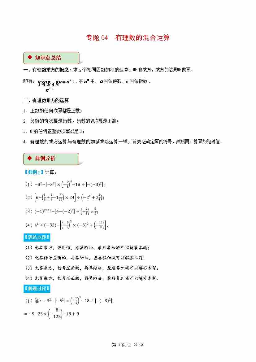 专题04 有理数的混合运算(计算题专项训练)(浙教版2024)(解析版)