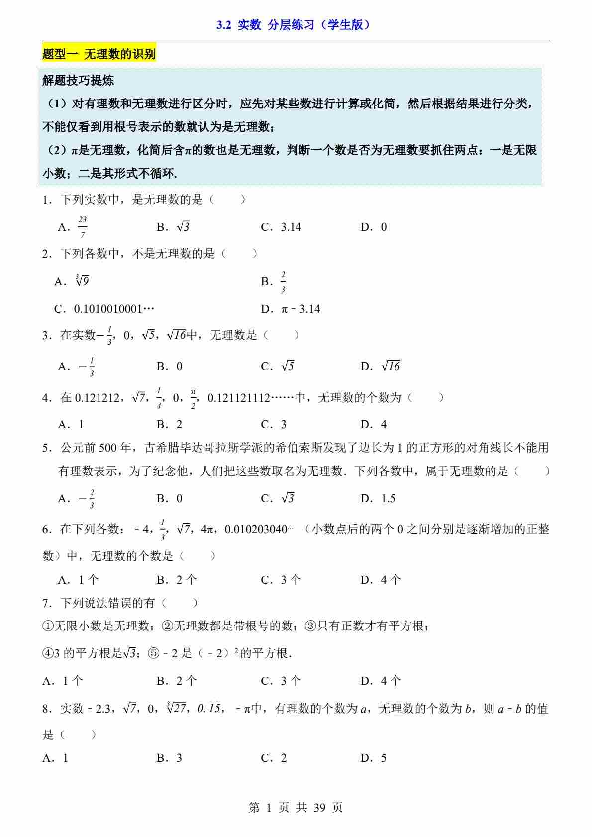 【清单】专题03 实数(考点清单+考点清单&题型解读)(原题版)