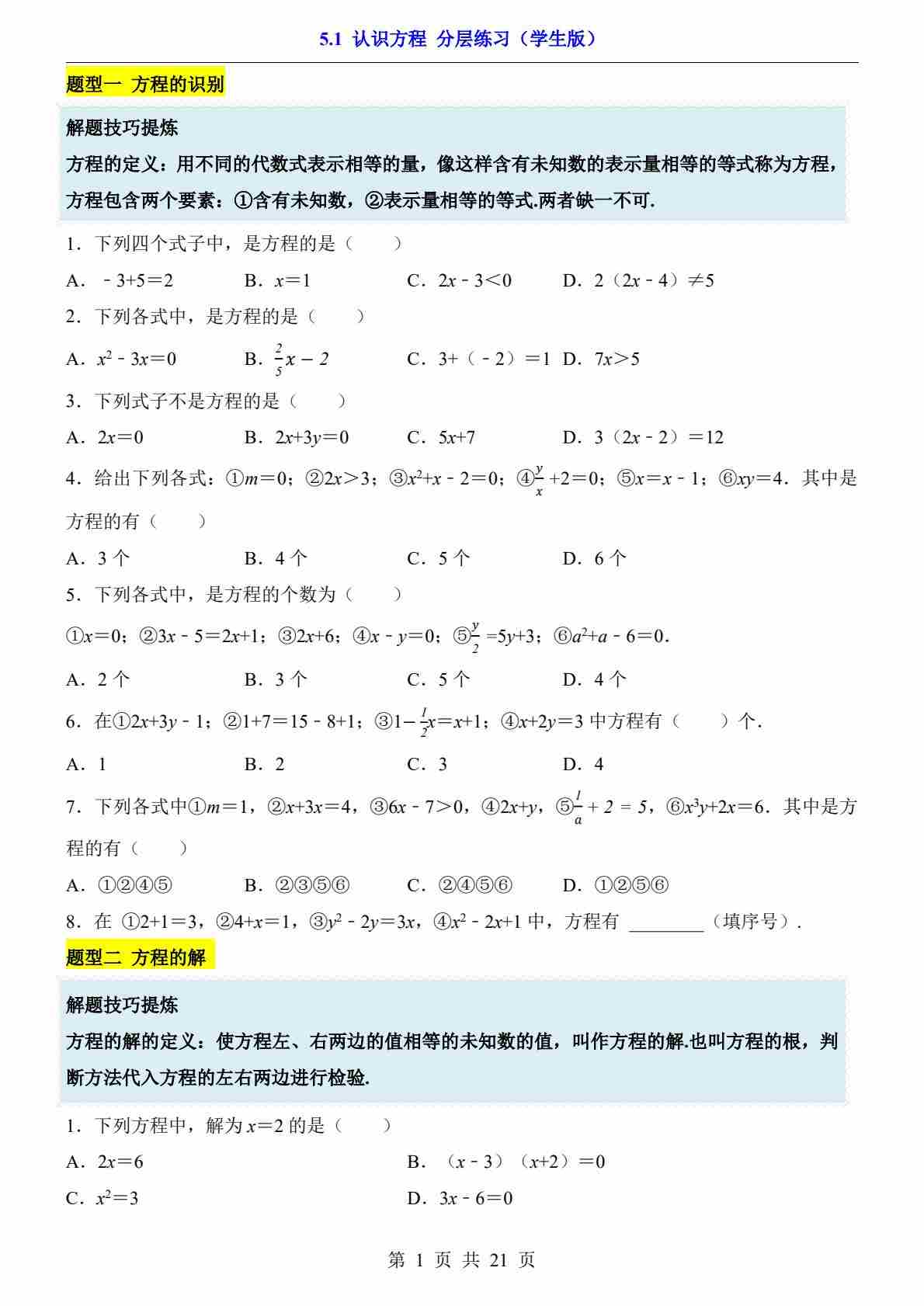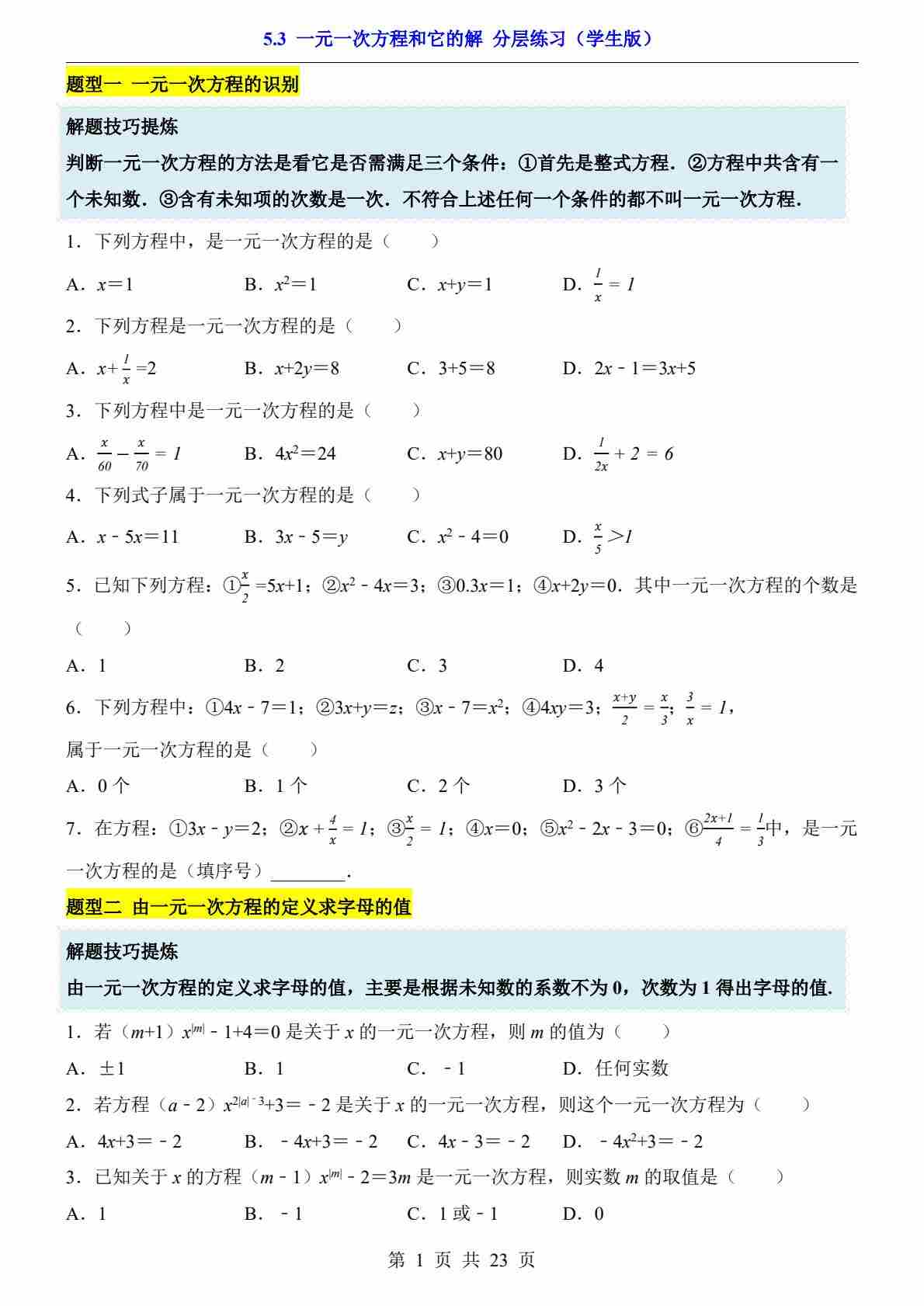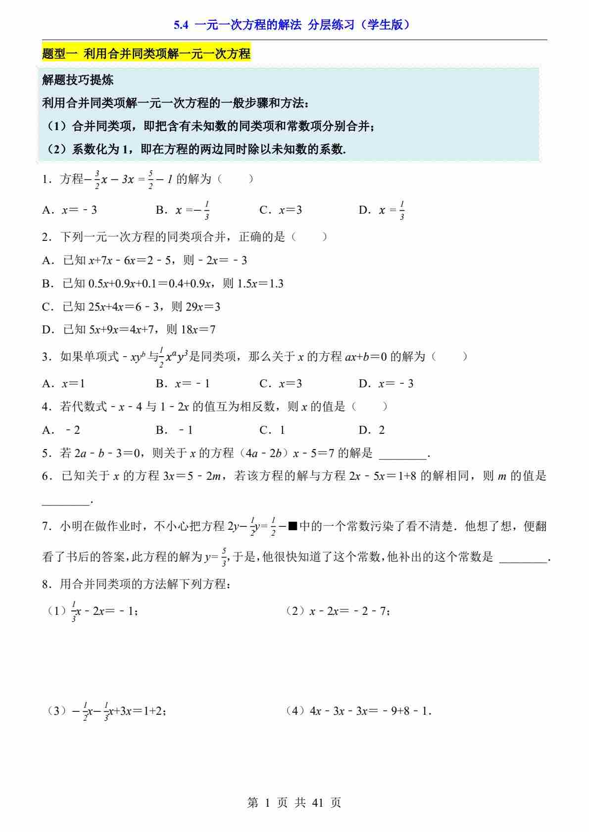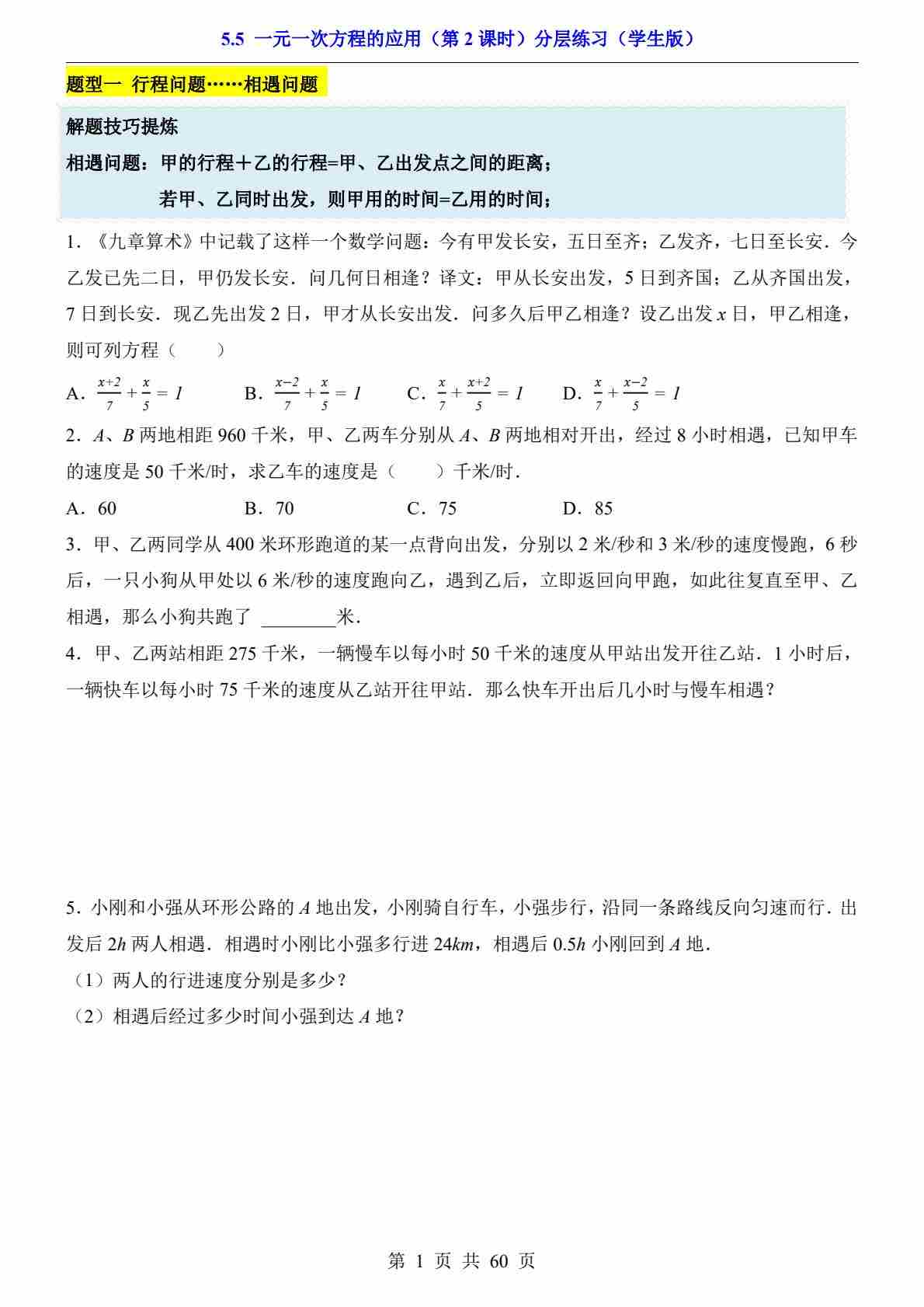5.5 一元一次方程的应用 第1课时(分层练习)
