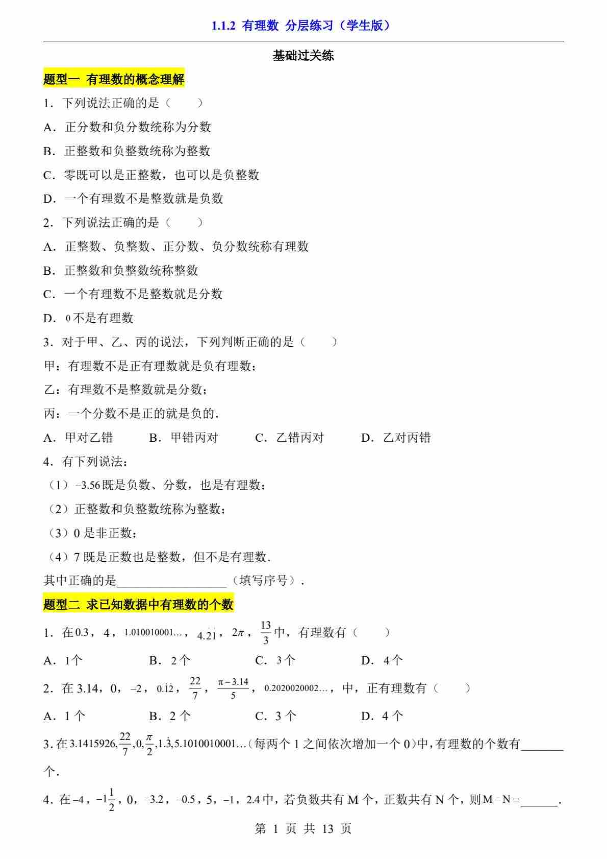第2章 有理数(B卷·培优卷 单元重点综合测试)(原卷版)