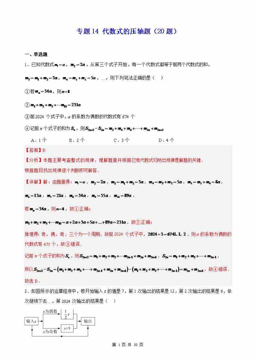 第1章 数学与我们同行(B卷·培优卷 单元重点综合测试)(解析版)