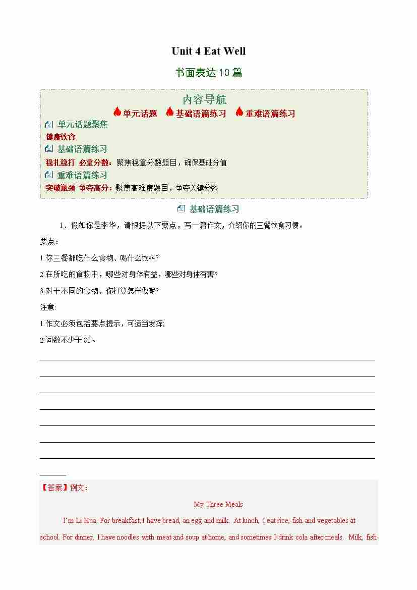 Unit 4 Eat Well 书面表达10篇(单元话题:健康饮食)(解析版)