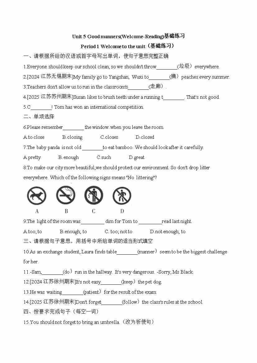 Unit5 Good manners(Welcome-Reading)基础练习-2025-2026学年译林版英语八年级下册